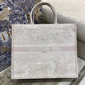 Introduced by Maria Grazia Chiuri, Creative Director of CHRSTN DR, the DYOR Book Tote has become a staple of the DYOR aesthetic. Designed to hold all the daily essentials, the style is fully embroidered with a pink Toile de Jouy motif. Adorned with the ‘CHRSTN DR PARIS’ signature on the front, the large tote exemplifies the House’s signature savoir-faire and may be carried by hand or worn over the shoulder.