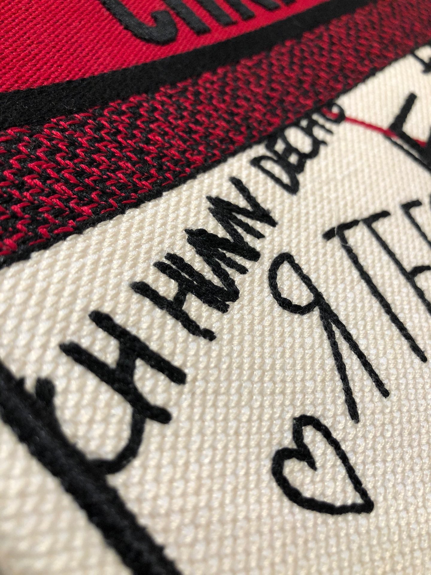 The DYOR Book Tote is an original creation introduced by Maria Grazia Chiuri, DYOR’s Creative Director, and has become a staple of the DYOR aesthetic. Designed to hold the daily esstlmtials, the style is fully embroidered with the black multicolor DYOR Zodiac Fantastico motif by Pietro Ruffo, inspired by Mr. DYOR’s fascination with astrology in a pastoral spirit. Adorned with the ‘CHRSTN DR PARIS’ signature on the front, the medium tote exemplifies the House’s signature savoir-faire and may be carried by hand or worn over the shoulder.