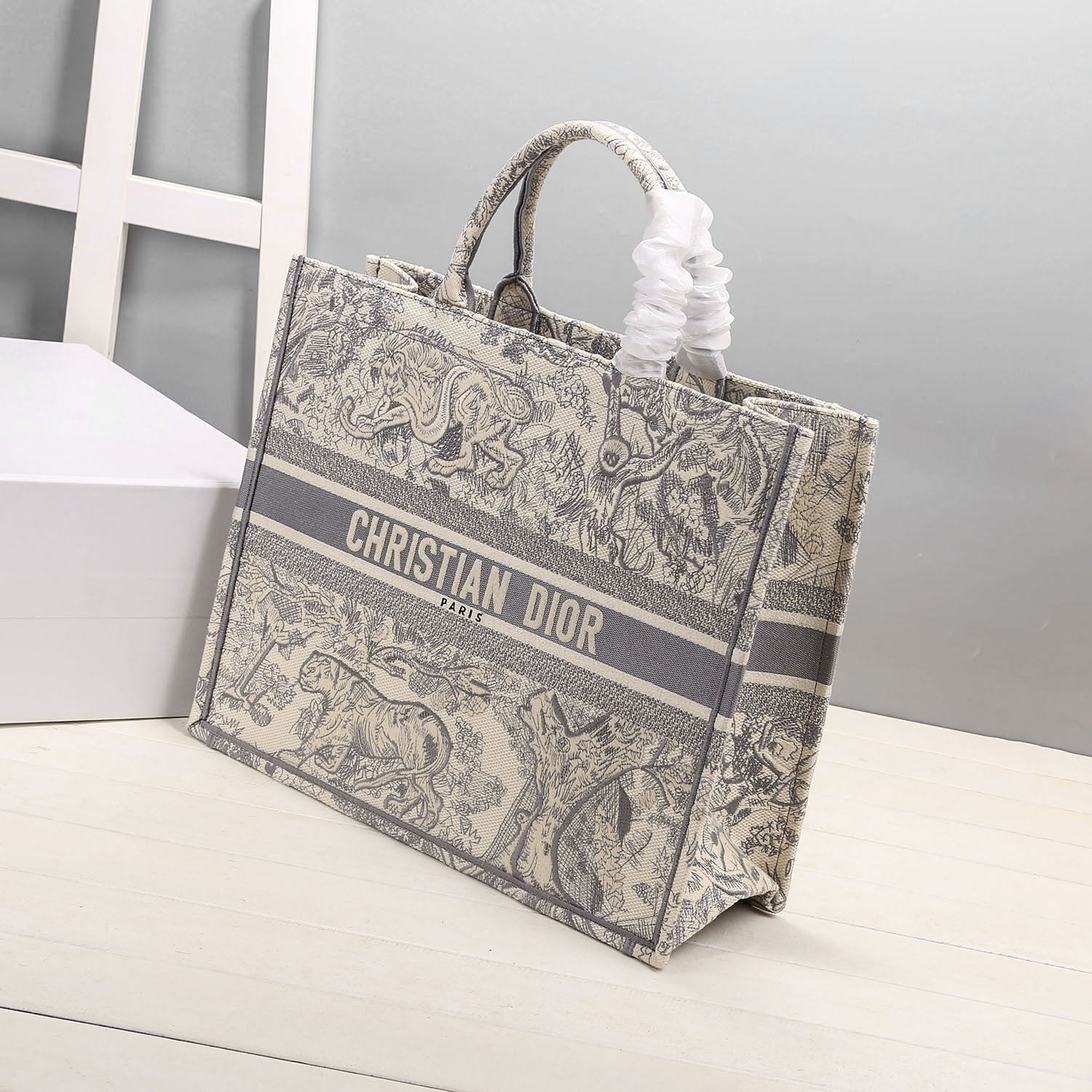 CHRSTN DR Medium DYOR Book Tote Bag By Maria Grazia Chiuri Grey For Womtlm 14in/36cm CD M1296ZTDT_M932