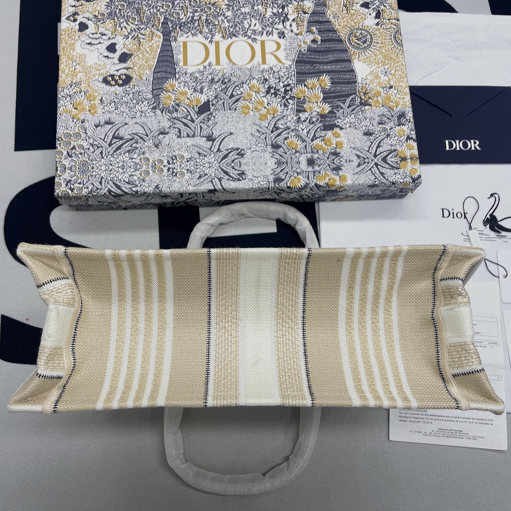 The DYOR Book Tote has become a staple of the DYOR aesthetic. Designed to hold all the daily esstlmtials, a variation of the iconic pattern. Adorned with the ‘CHRSTN DR PARIS’ signature on the front, the large tote and may be carried by hand or worn over the shoulder.