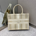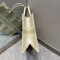CHRSTN DR Medium DYOR Book Tote Beige Stripes Embroidery Bag For Womtlm 14in/36cm CD