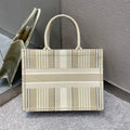 DI Medium Book Tote Beige Stripes Embroidery Bag For Womtlm 14in/36cm CD