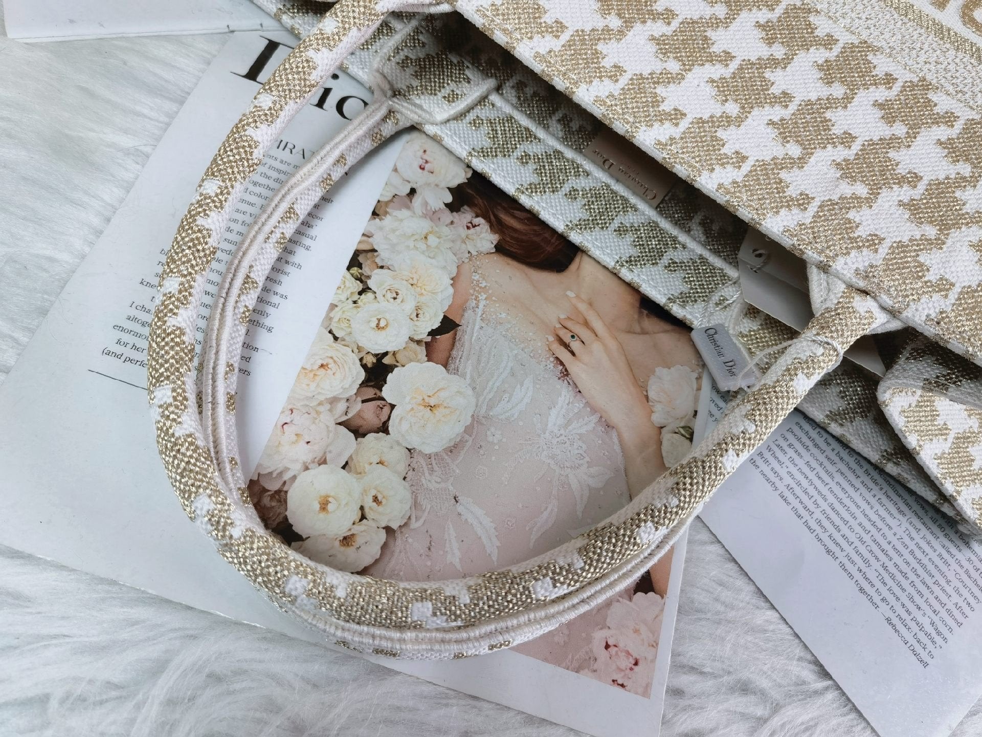 DI Medium Book Tote Gold White, For Women, Women’s Handbags 14in/36cm CD