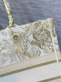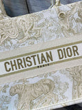 Introduced by Maria Grazia Chiuri, Creative Director of CHRSTN DR, the DYOR Book Tote has become a staple of the DYOR aesthetic. Designed to hold all the daily essentials, the style is fully embroidered with the gold-tone Toile de Jouy motif. Adorned with the ‘CHRSTN DR PARIS’ signature on the front, the medium tote exemplifies the House’s signature savoir-faire and may be carried by hand or worn over the shoulder.