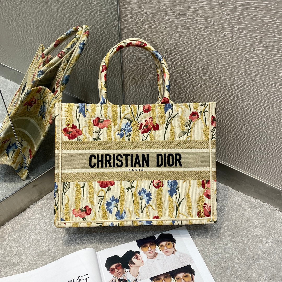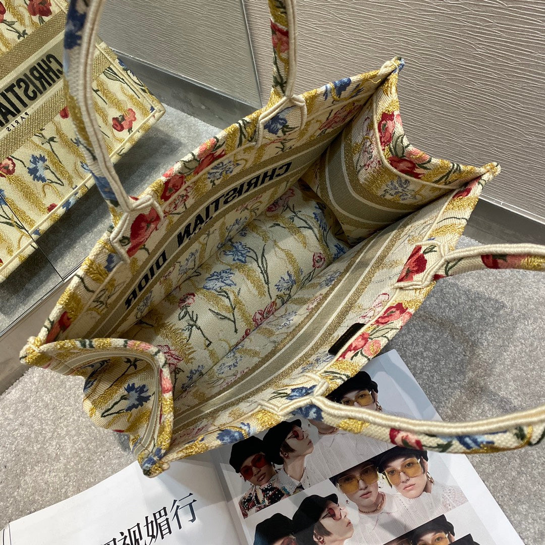 DI Medium Book Tote in Hibiscus Metallic Thread Embroidery Bag For Women 14in/36cm CD