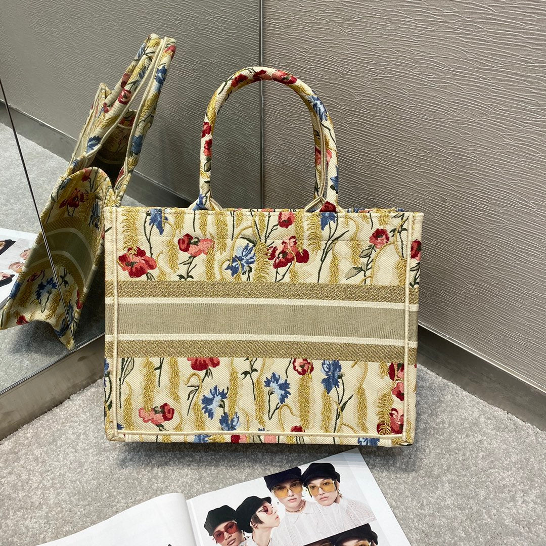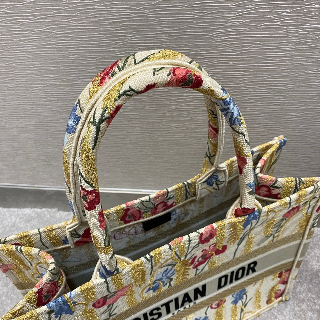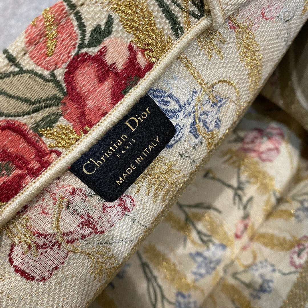 CHRSTN DR Medium DYOR Book Tote in Hibiscus Metallic Thread Embroidery Bag For Womtlm 14in/36cm CD