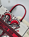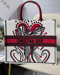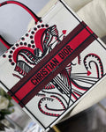 CHRSTN DR Medium DYOR Book Tote Latte Multicolor Cupidon Embroidery, Red/White, For Women Women’s Handbags, 41cm CD M1296ZTQG_M941