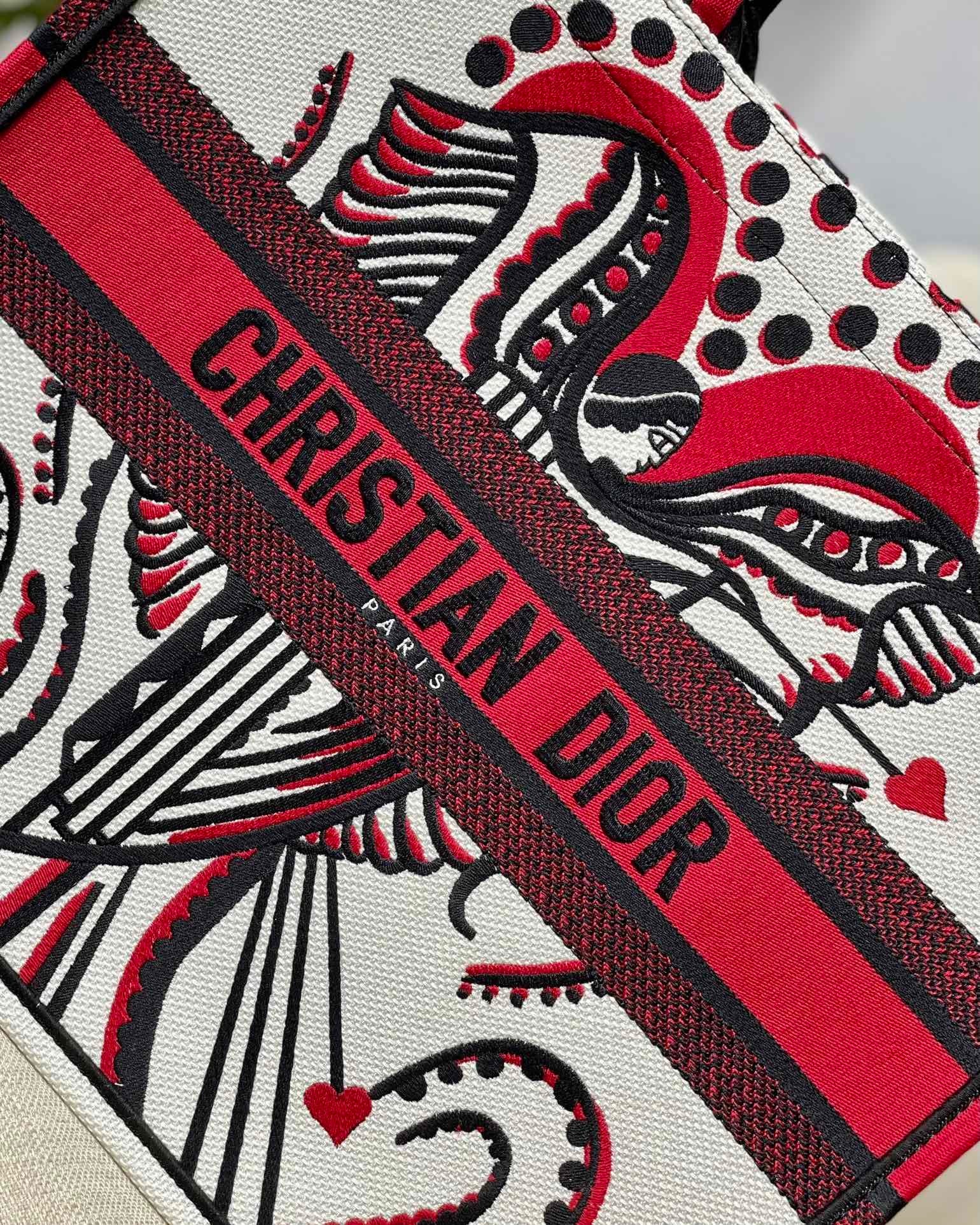 DI Medium Book Tote Latte Multicolor Cupidon Embroidery, Red/White, For Women Women’s Handbags, 41cm CD M1296ZTQG_M941