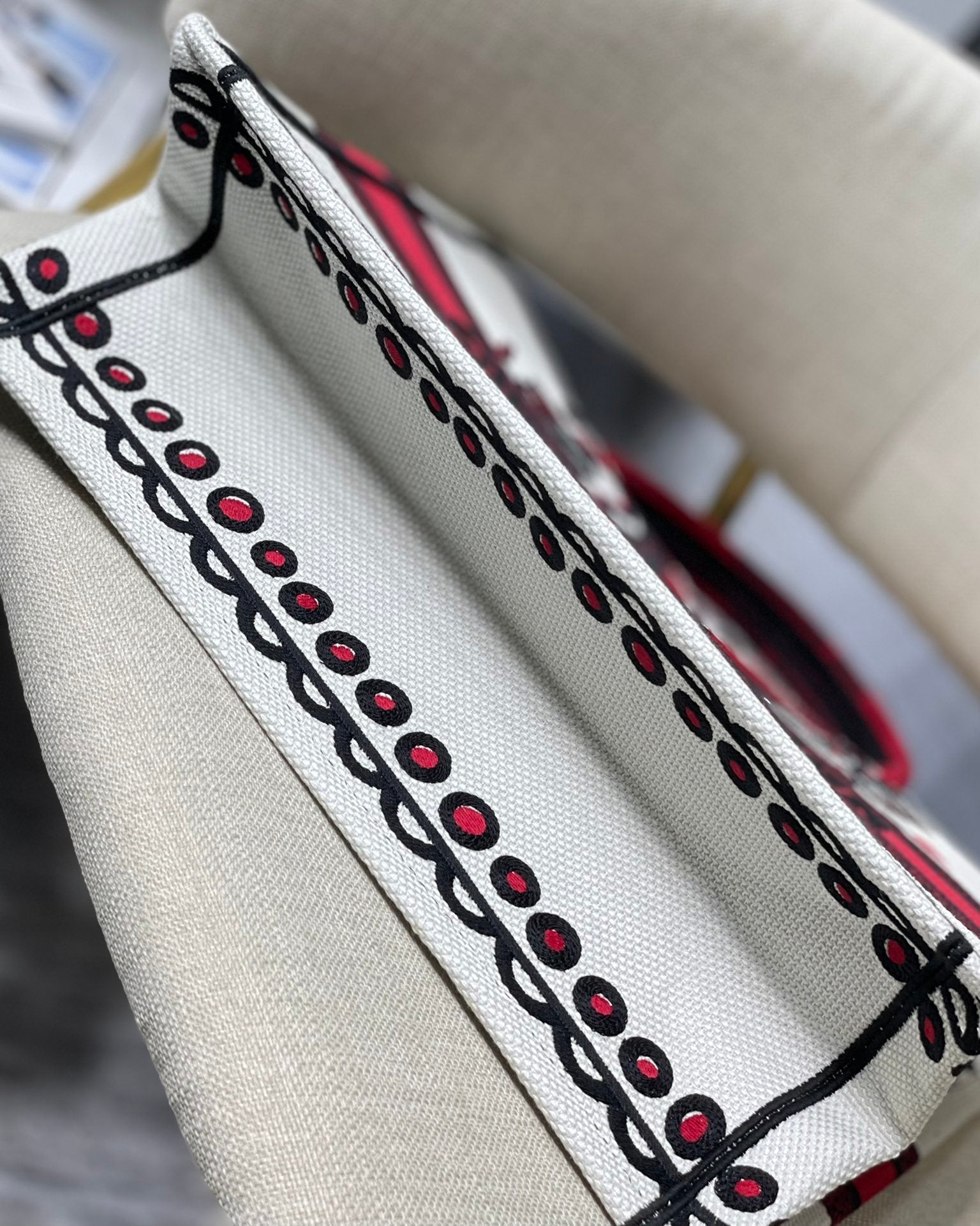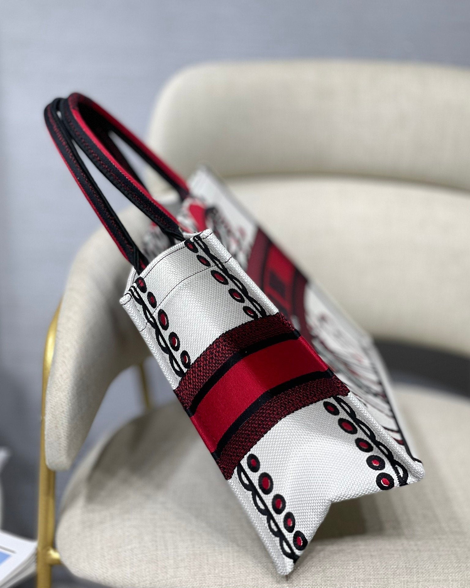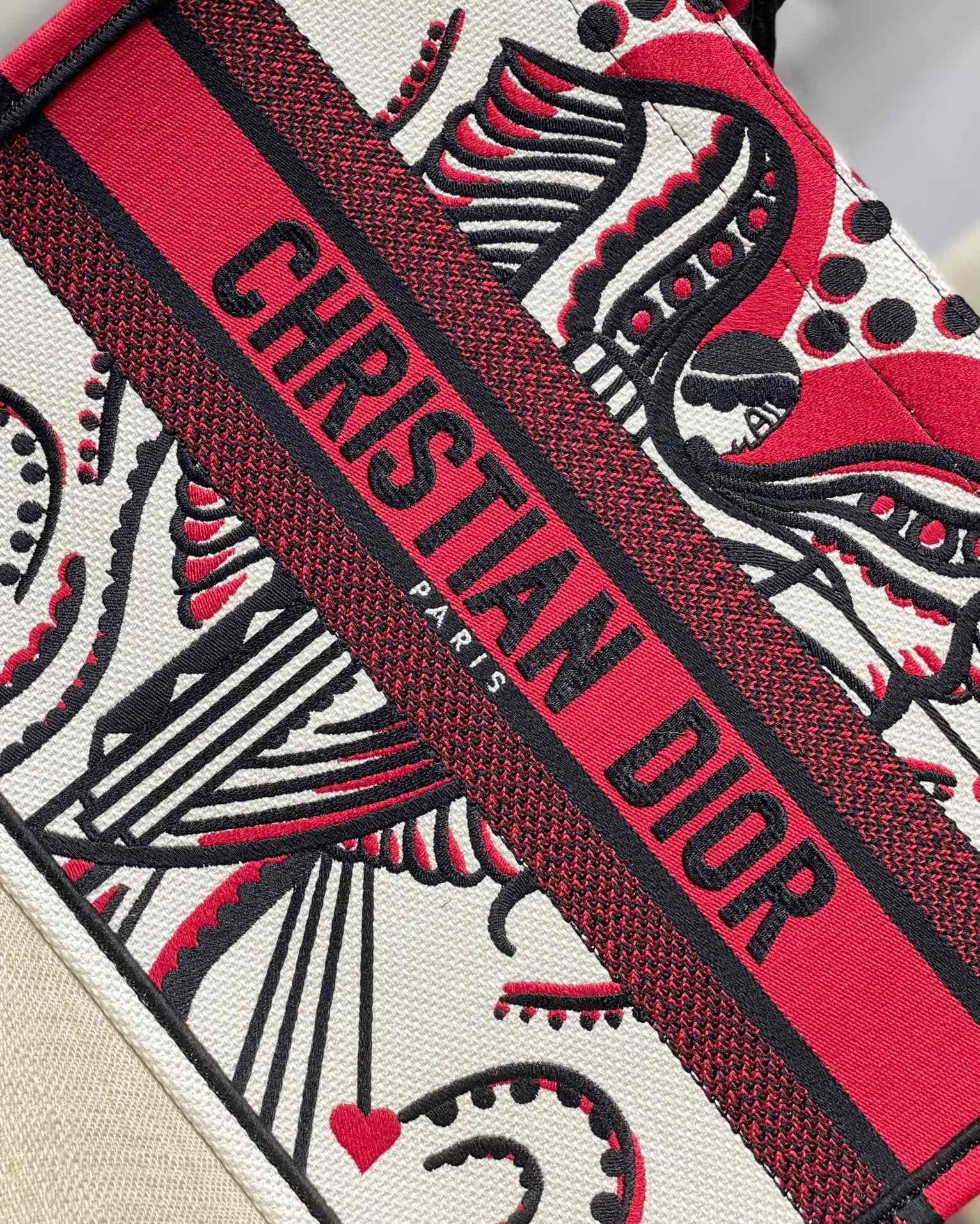 DI Medium Book Tote Latte Multicolor Cupidon Embroidery, Red/White, For Women Women’s Handbags, 41cm CD M1296ZTQG_M941