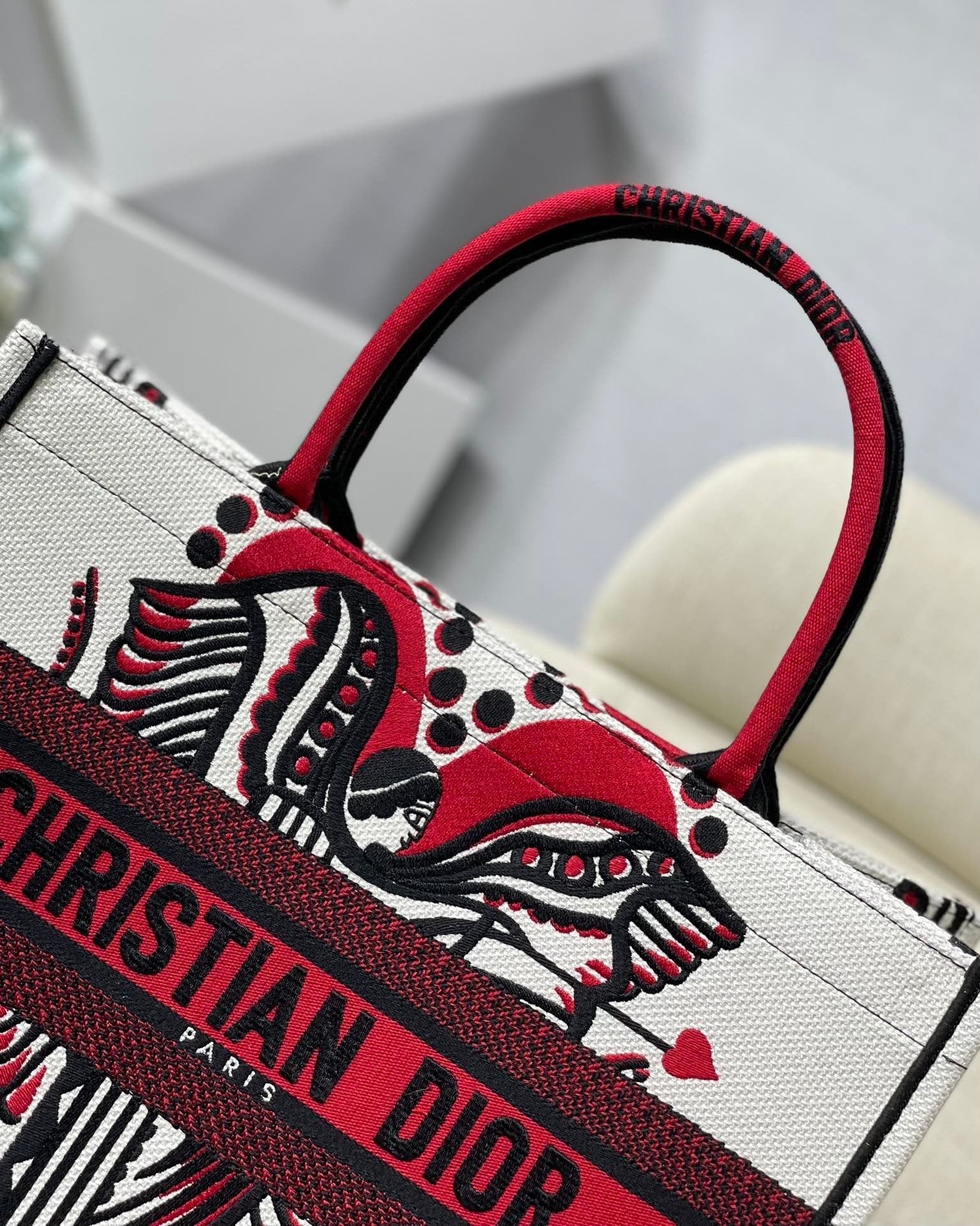 DI Medium Book Tote Latte Multicolor Cupidon Embroidery, Red/White, For Womtlm Womtlm’s Handbags, 41cm CD M1296ZTQG_M941