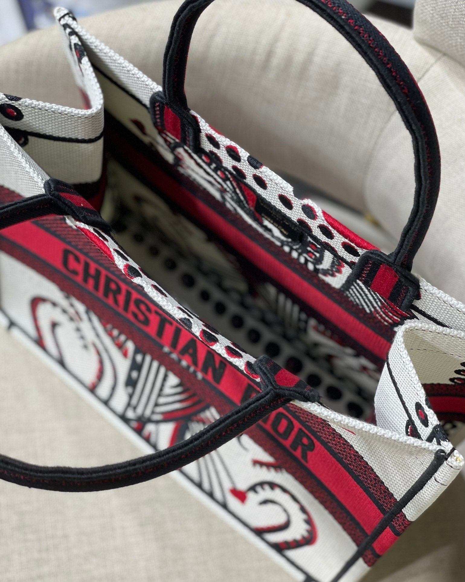 CHRSTN DR Medium DYOR Book Tote Latte Multicolor Cupidon Embroidery, Red/White, For Womtlm Womtlm’s Handbags, 41cm CD M1296ZTQG_M941