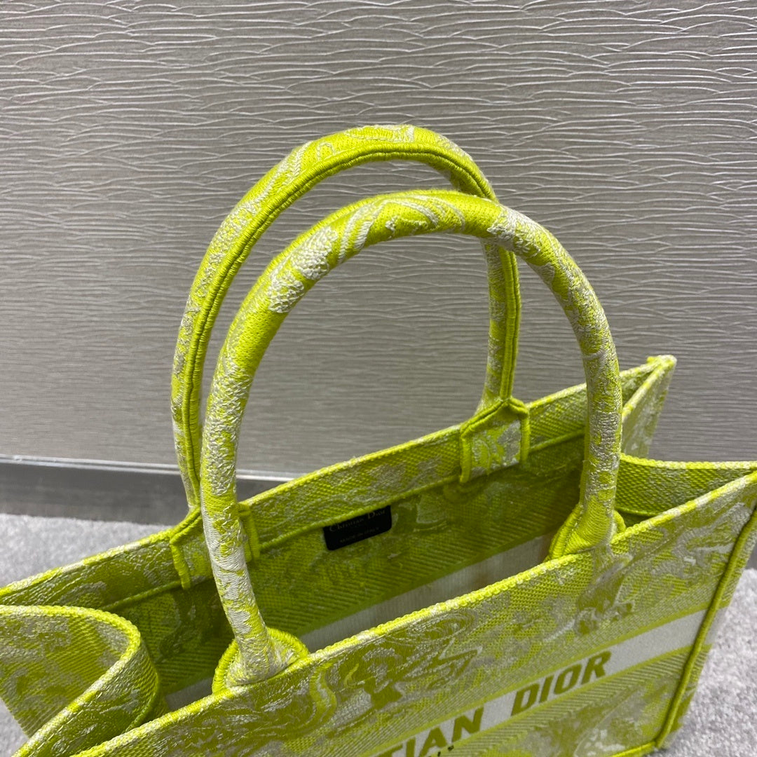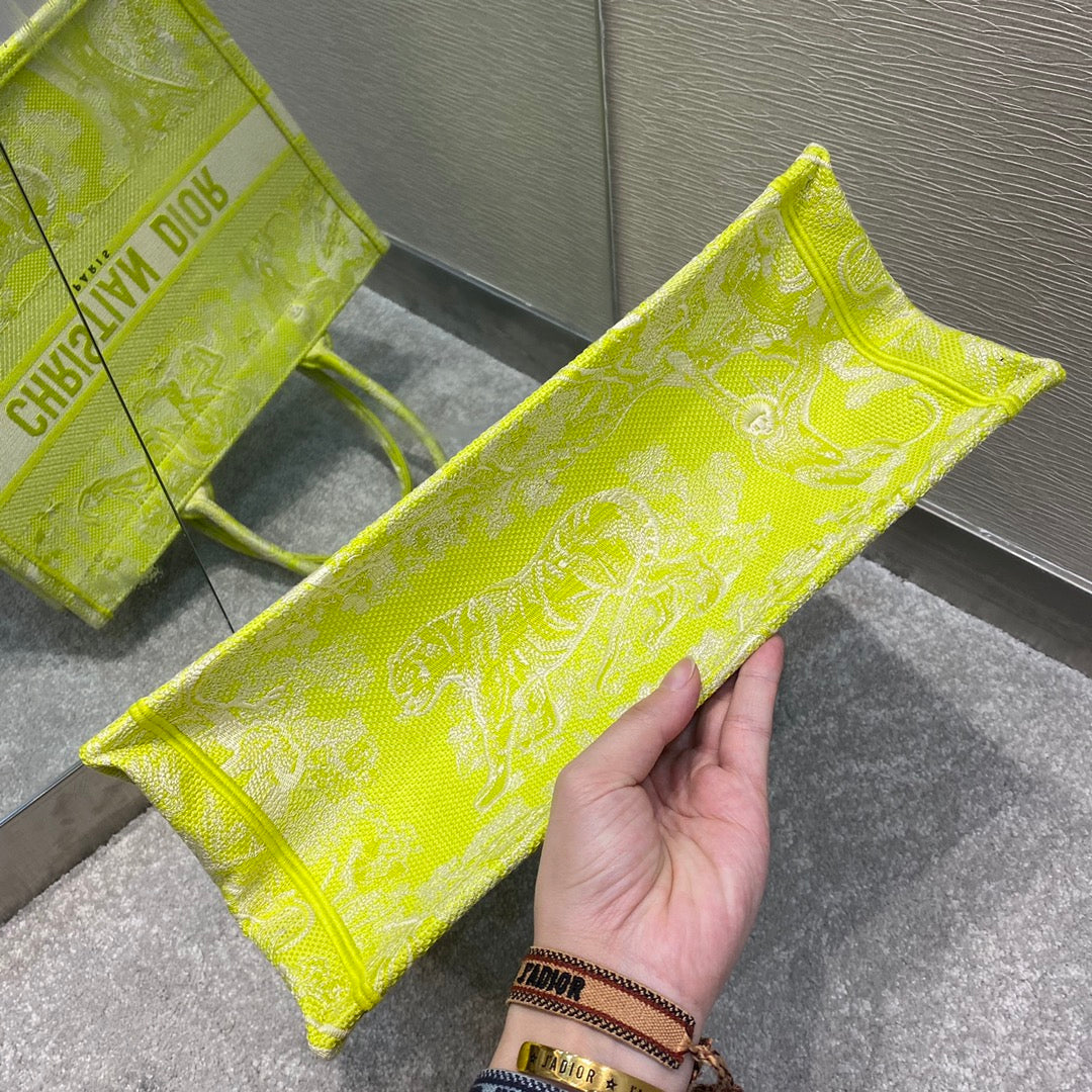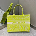 CHRSTN DR Medium DYOR Book Tote Lime Toile de Jouy Reverse Embroidery For Women 36cm/16.5in CD