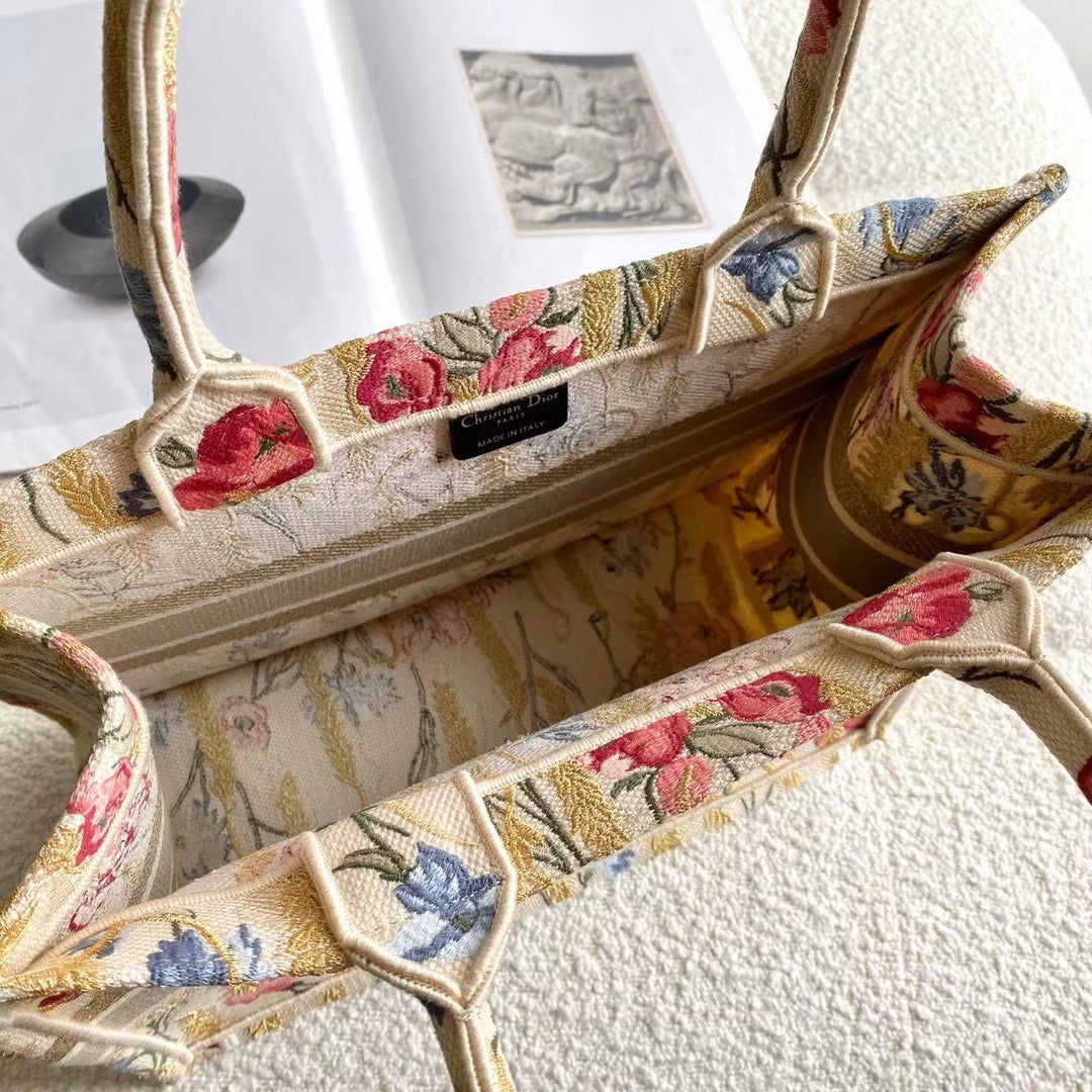 DI Medium Book Tote Multicolor in Hibiscus Metallic Thread Embroidery Bag For Women 14in/36cm CD