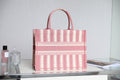 DI Medium Book Tote Pink D-Stripes Embroidery For Women 36cm/16.5in CD
