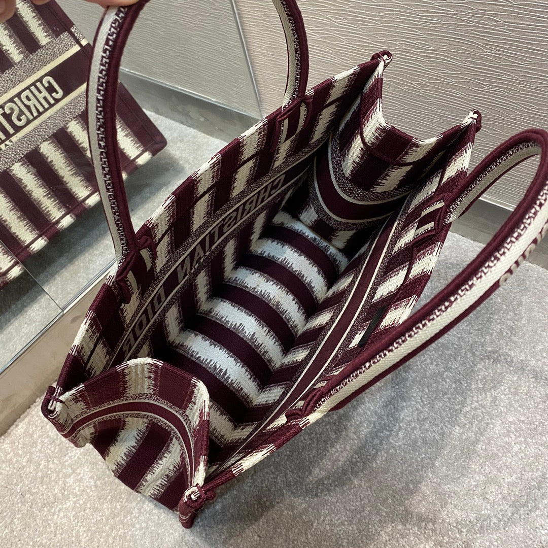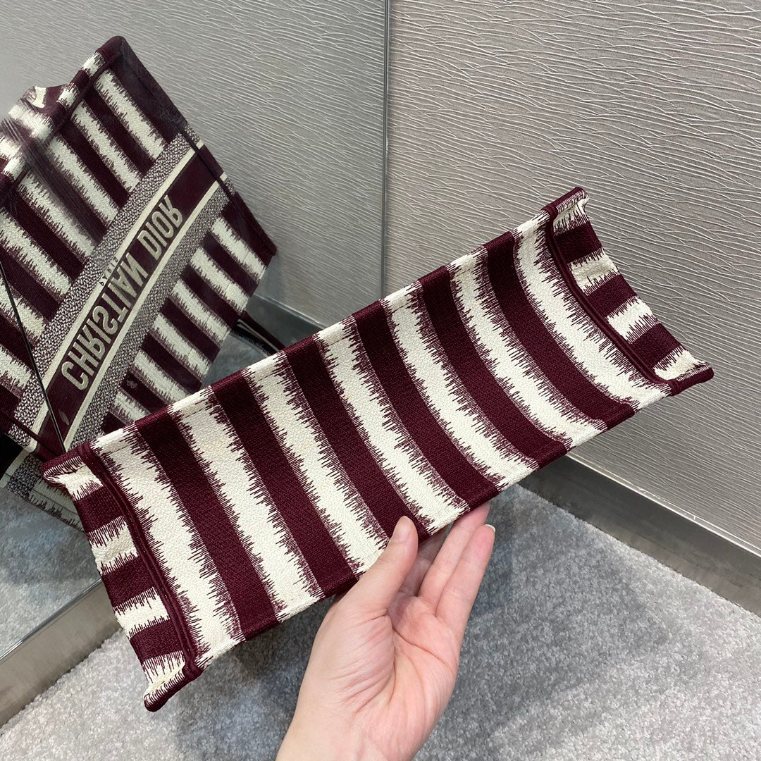 DI Medium Book Tote Red D-Stripes Embroidery For Women 36cm/16.5in CD