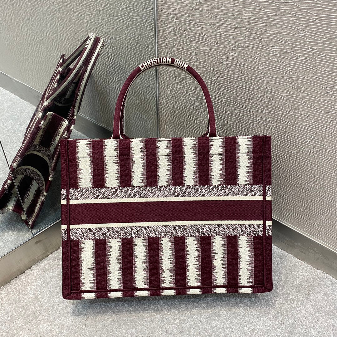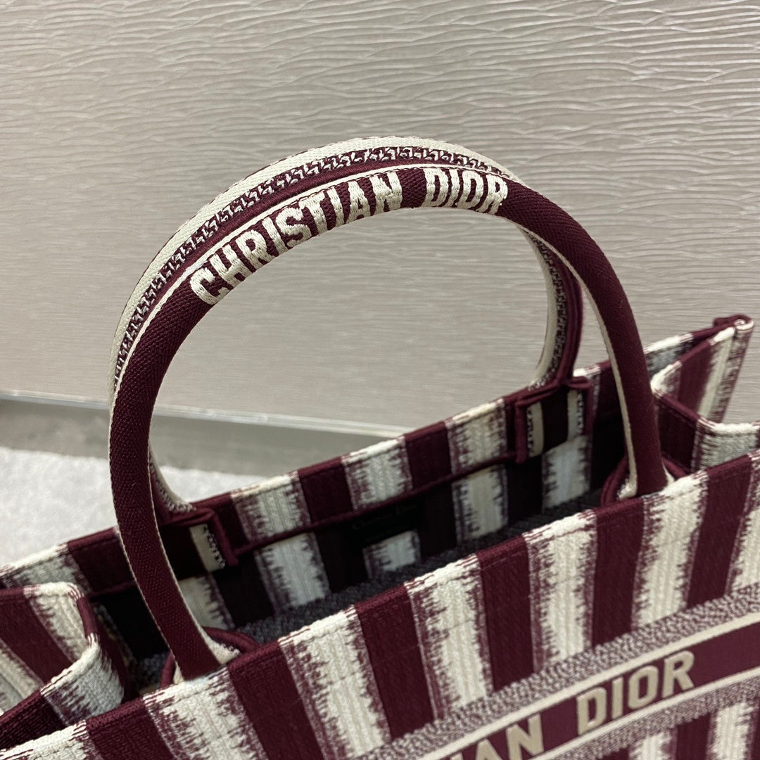 CHRSTN DR Medium DYOR Book Tote Red D-Stripes Embroidery For Womtlm 36cm/16.5in CD