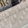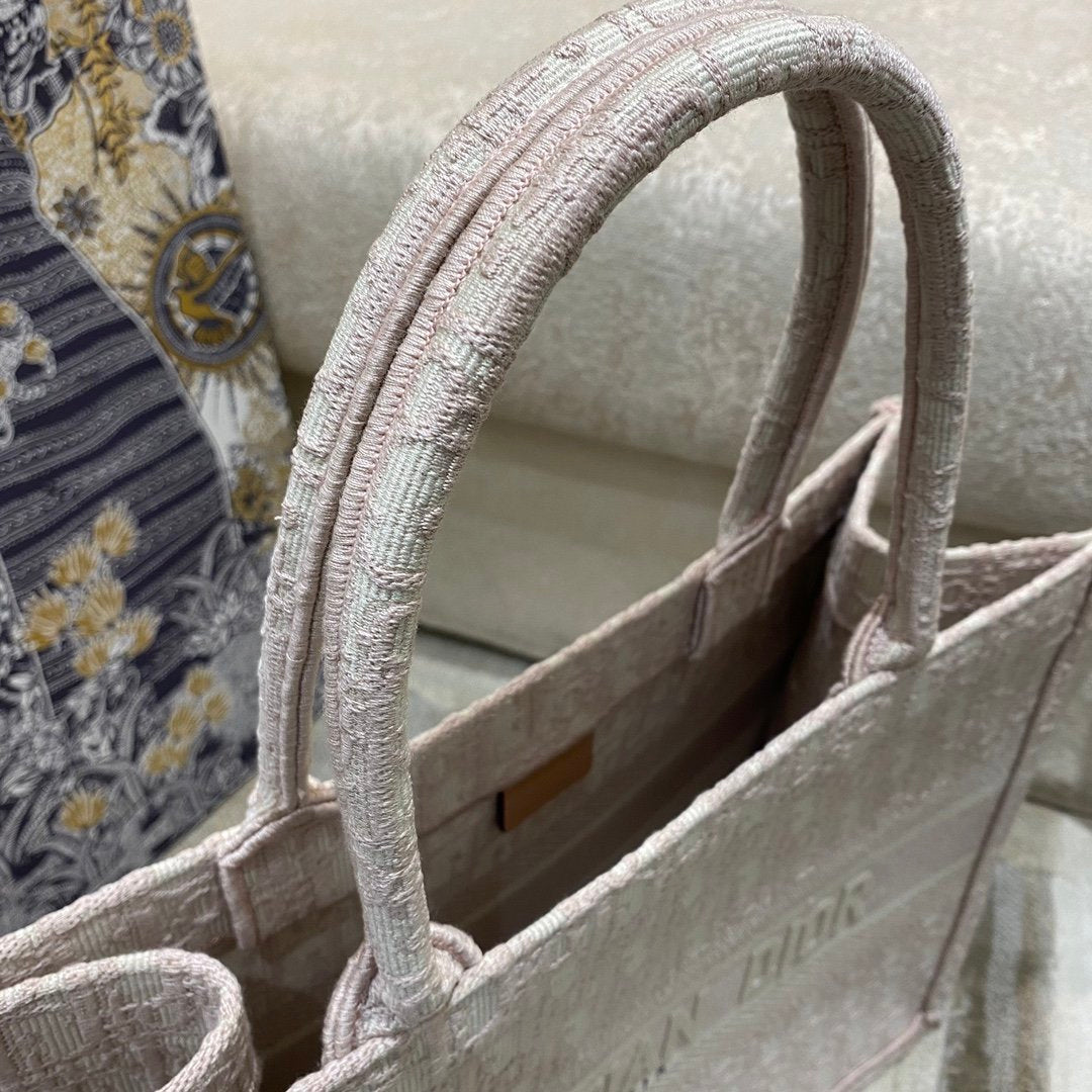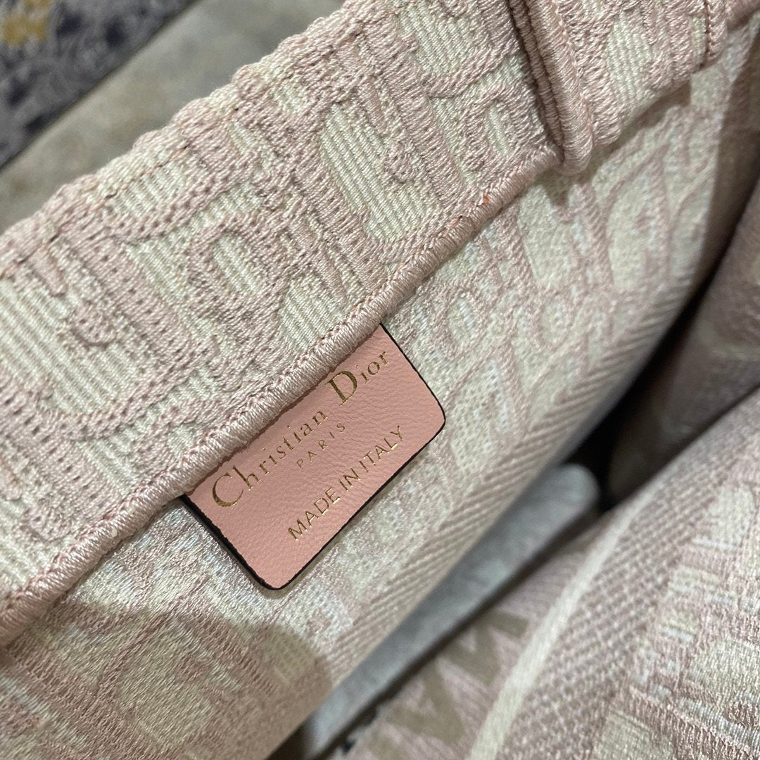 The DYOR Book Tote, as imagined by Maria Grazia Chiuri, has become an essential item of the DYOR spirit. The silhouette is fully embroidered with the House’s hallmark cornflower Pink DYOR Oblique motif. A prime example of the House’s savoir-faire, the miniature bag may be carried by hand and pairs well with other DYOR Oblique creations.