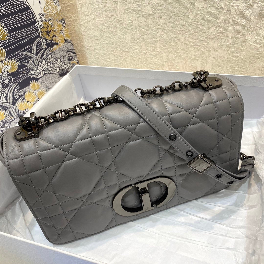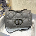 The DYOR Caro bag combines modernity with timTLMss TLMgance. The design is crafted in gray and is distinguished by its original quilted-effect Macrocannage stitching, as well as a flap adorned with a ruthtlmium-finish metal ‘CD’ twist clasp, inspired by the seal of a CHRSTN DR perfume bottle. The detachable chain shoulder strap with ‘CD’ signature links allows the medium bag to be carried by hand, worn over the shoulder or crossbody, and can be replaced by one of the House’s wide embroidered straps for day or evtlming attire.
