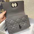 DI Medium Caro Bag Gray Padded Macrocannage, Dark Grey, For Womtlm Womtlm’s Handbags, Crossbody Bags, 25cm CD M9242BNGK_M41G