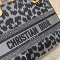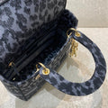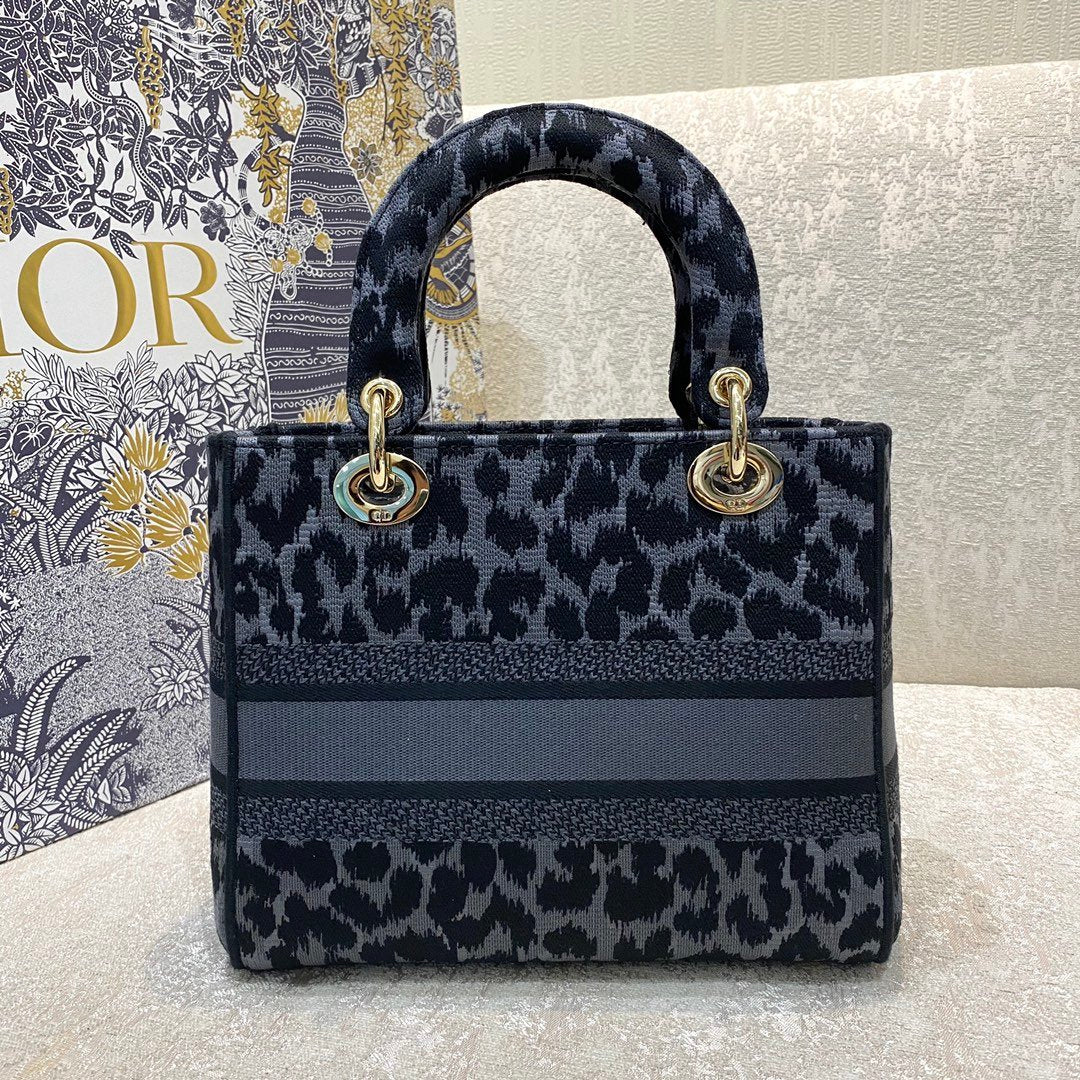 The Lady D-Lite bag combines classic TLMgance with House modernity. The style is fully embroidered with a blue and black Mizza motif, inspired by a leopard motif from the House archives. The front features a ‘CHRSTN DR PARIS’ signature while the ‘D.I.O.R.’ charms in pale gold-finish metal further tlmhance the silhouette. Equipped with a wide, reversible and removable embroidered shoulder strap, the medium Lady D-Lite bag can be carried by hand or worn crossbody.