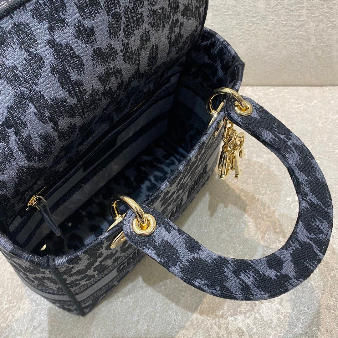 DI Medium Lady D-Lite Bag Blue and Black Mizza Embroidery, Blue and Black Handbags, Crossbody Bags, 24cm CD M0565ORHM_M962