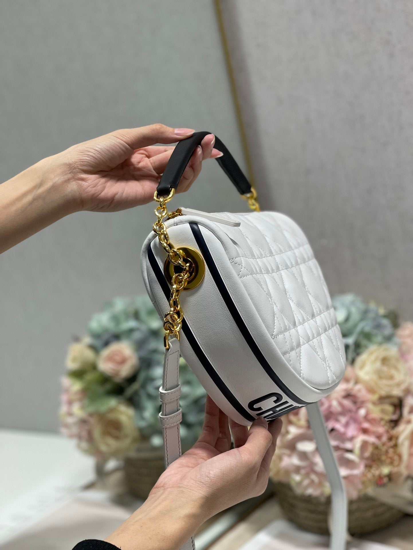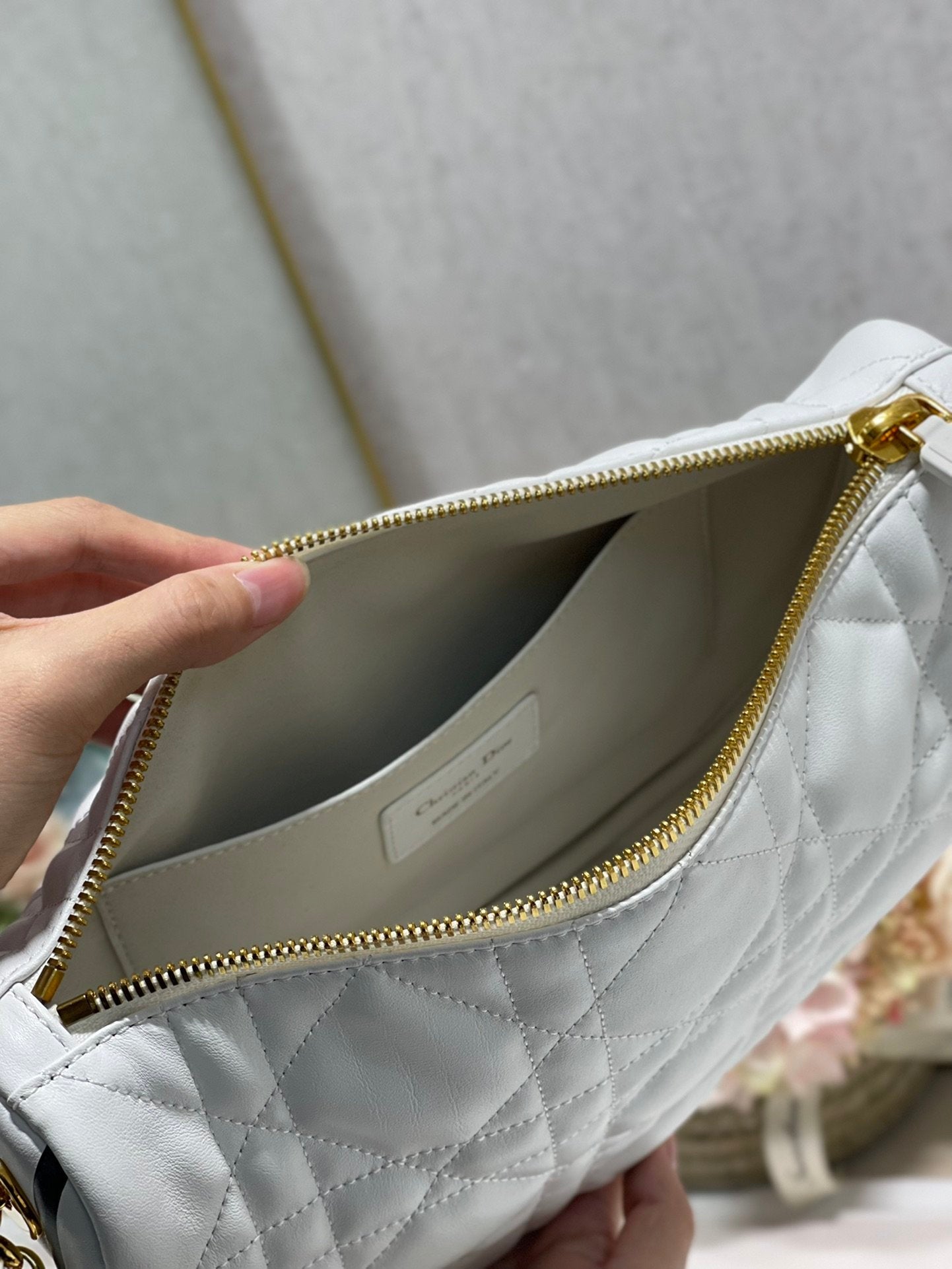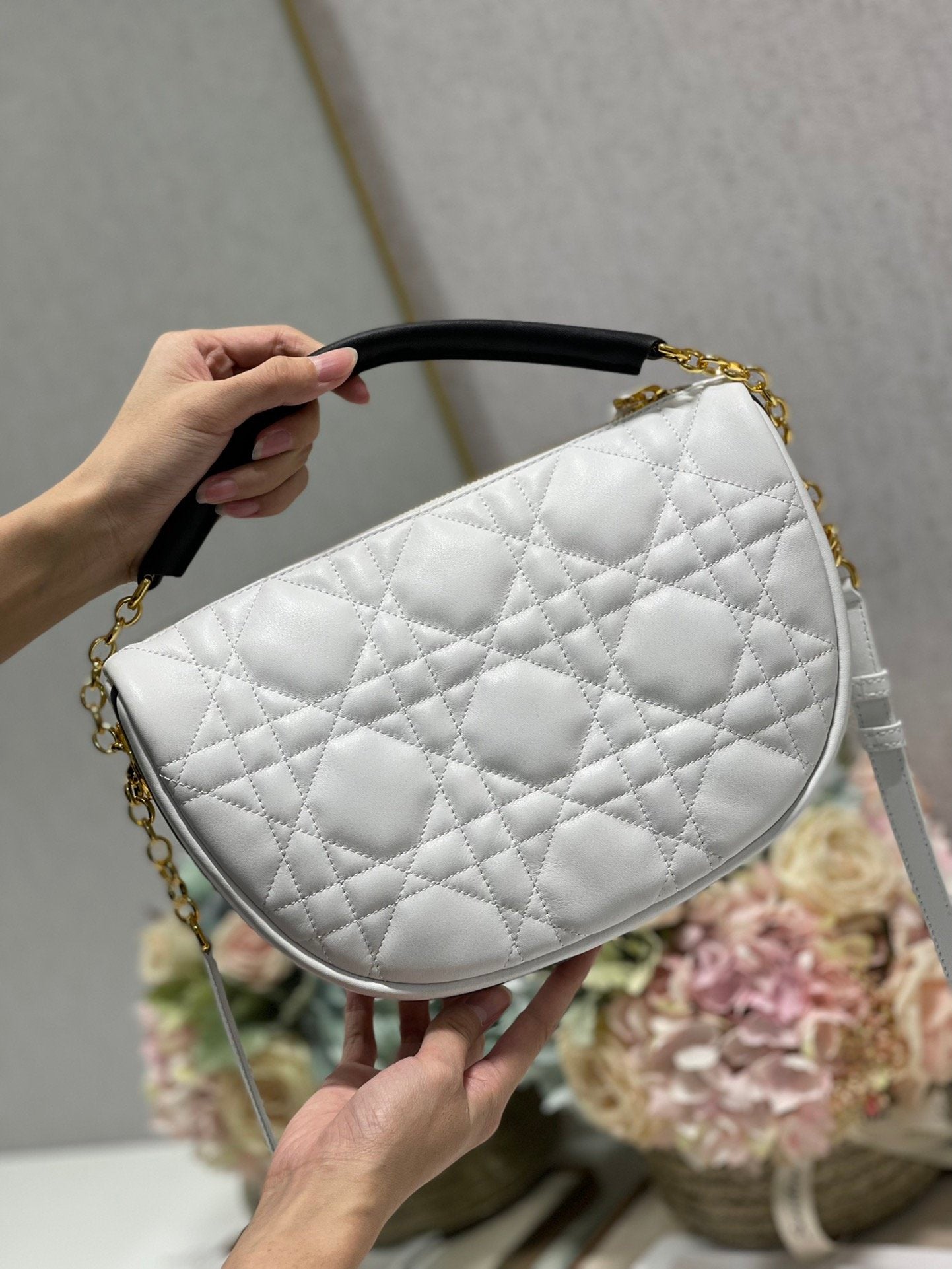 CHRSTN DR Medium DYOR Vibe Hobo Bag White Cannage, White Handbags, Crossbody Bags, 30cm CD M7201ONOA_M879