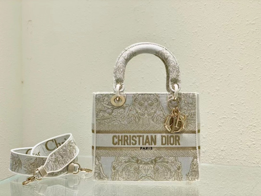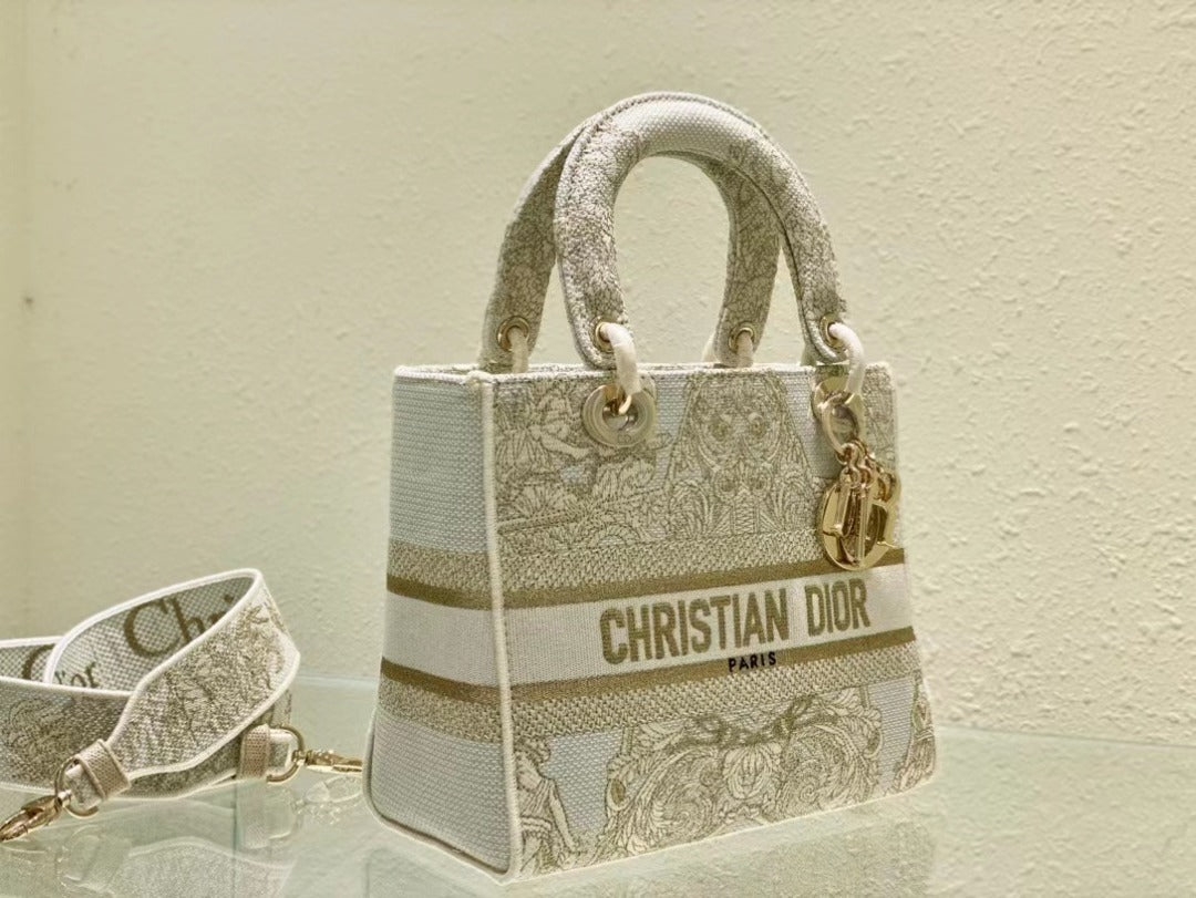 DI Medium Lady D-Lite Bag, Beige Handbags, Crossbody Bags, 24cm CD