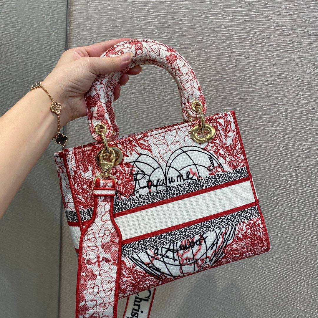 DI Medium Lady D-Lite Bag, Red Handbags, Crossbody Bags, 24cm CD