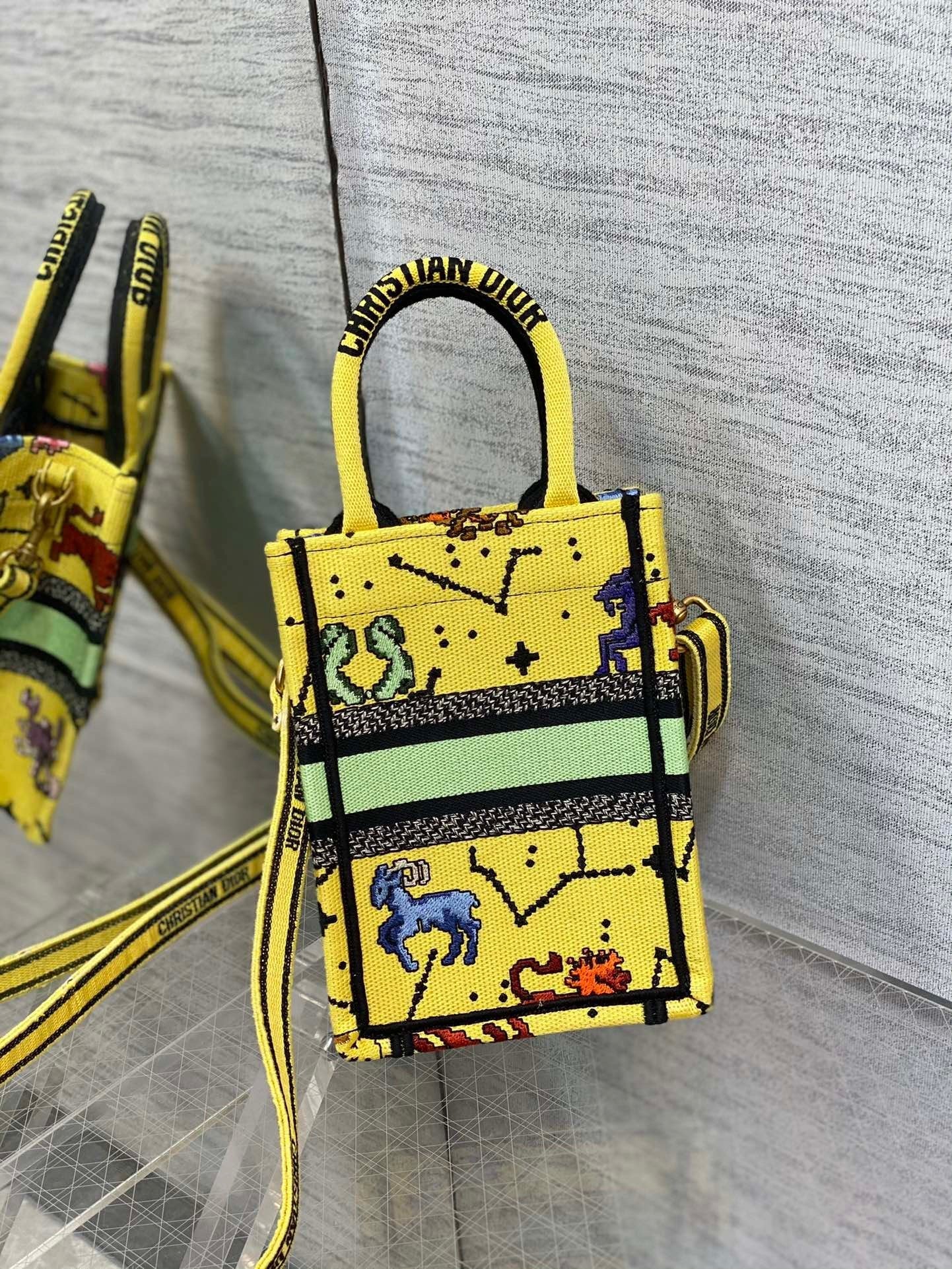 Maria Grazia Chiuri’s phone bag enriches the iconic DYOR Book Tote line with an ideal example of the House’s savoir-faire. Enhanced by the ‘CHRSTN DR PARIS’ signature on the front, the miniature bag will accommodate a phone as well as the small daily essentials. Completed by an adjustable and removable shoulder strap, the modern accessory can be carried by hand, worn over the shoulder or crossbody.
