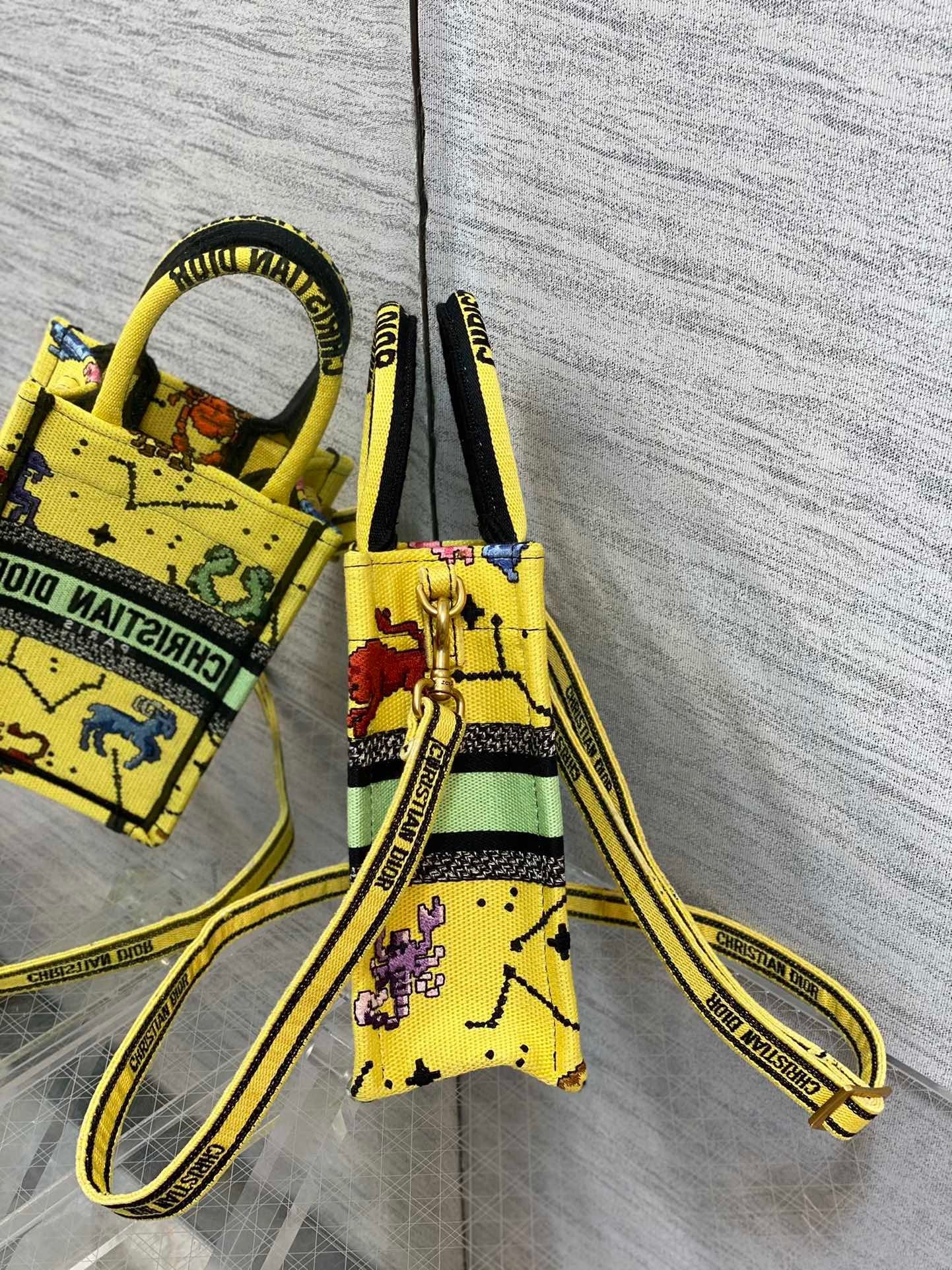 Maria Grazia Chiuri’s phone bag tlmriches the iconic DYOR Book Tote line with an ideal example of the House’s savoir-faire. tlmhanced by the ‘CHRSTN DR PARIS’ signature on the front, the miniature bag will accommodate a phone as well as the small daily esstlmtials. Completed by an adjustable and removable shoulder strap, the modern accessory can be carried by hand, worn over the shoulder or crossbody.