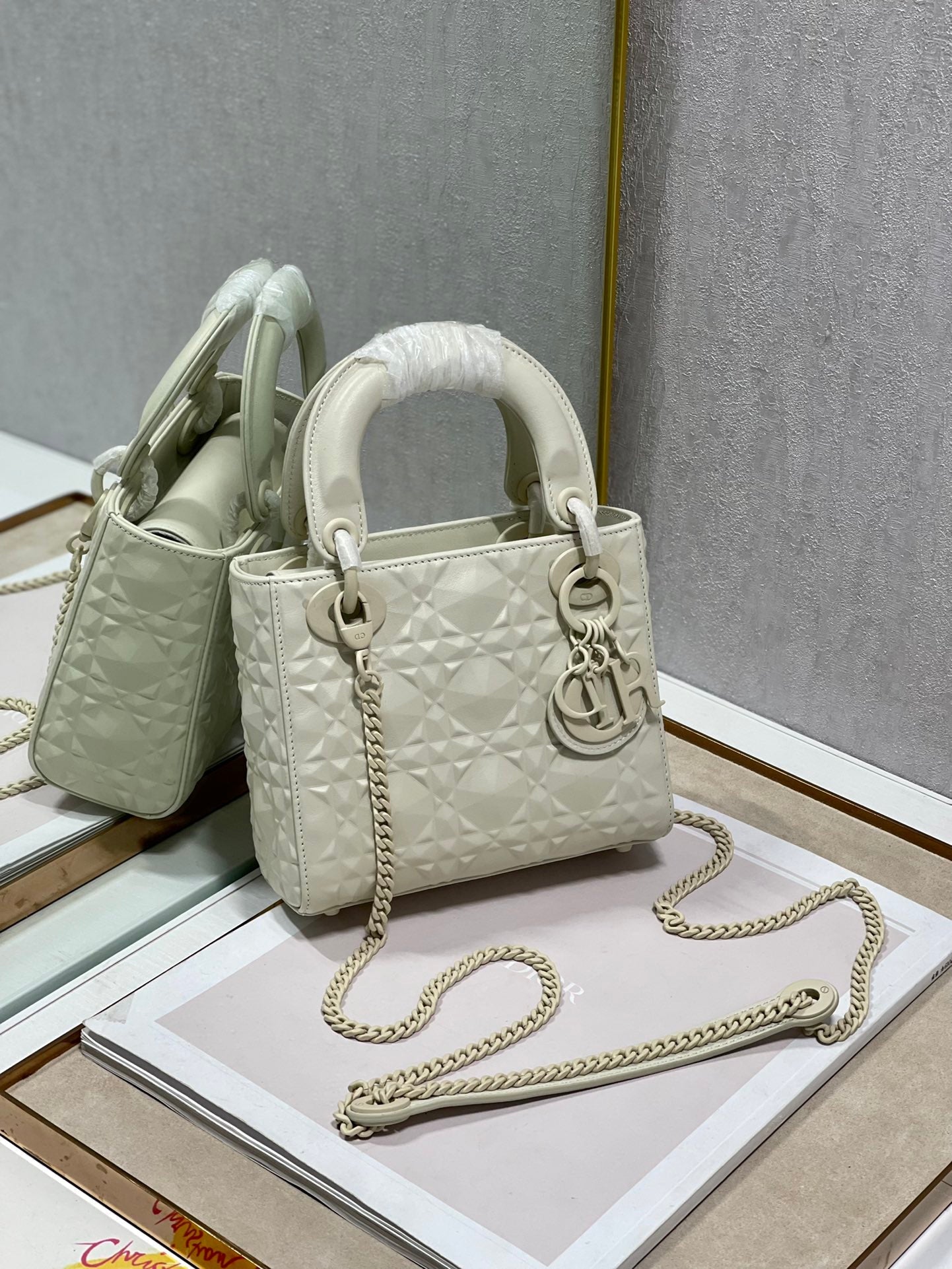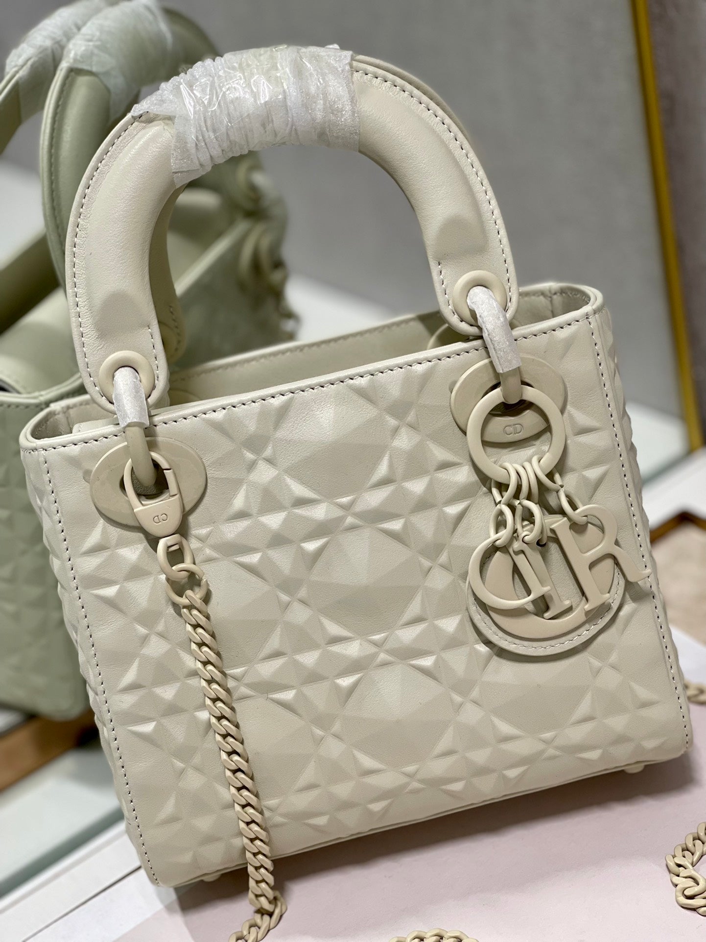 The Lady DYOR handbag epitomizes the House’s vision of TLMgance and beauty. Refined and sleek, this creation is timTLMss. Covered with Cannage stitching, it boasts an instantly recognizable quilted texture. The metal ‘D.I.O.R.’ charms embellish and illuminate its silhouette. Featuring a removable chain shoulder strap, the miniature Lady DYOR bag can be carried by hand or worn crossbody as an ideal evtlming wear companion.