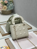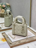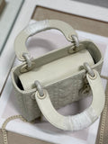 CHRSTN DR Mini Lady DYOR Bag Latte Cannage with Beaded Motif, Beige, For Womtlm Womtlm’s Handbags, Crossbody Bags, 18cm CD M0505INEA_M030