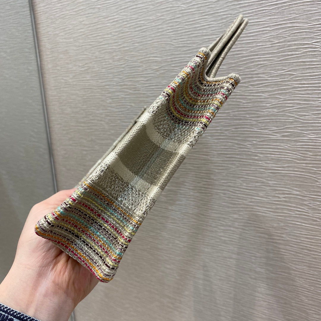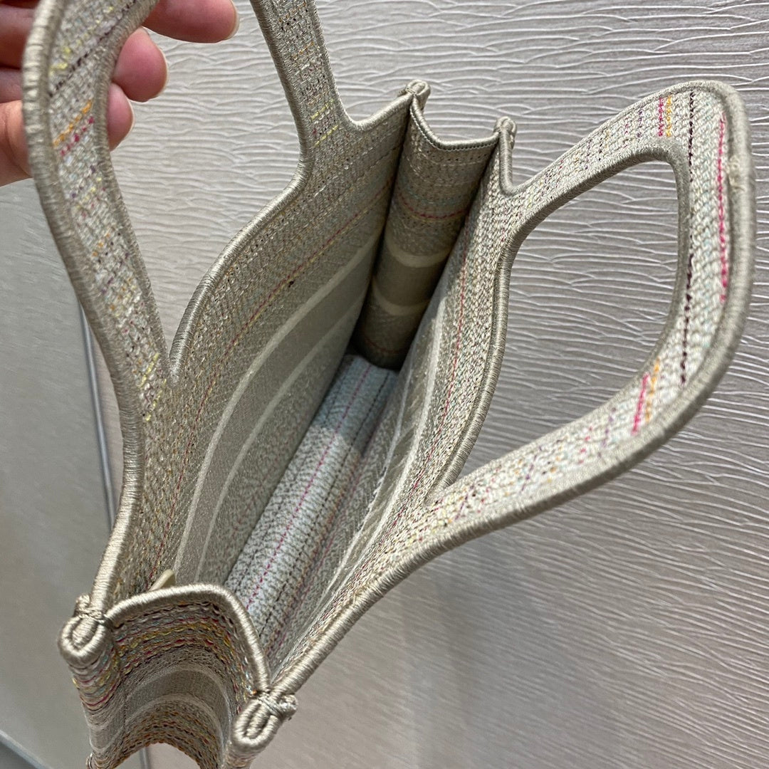 CHRSTN DR Small DYOR Book Tote Bag Canvas Stripes Embroidery For Womtlm 23cm/9in CD