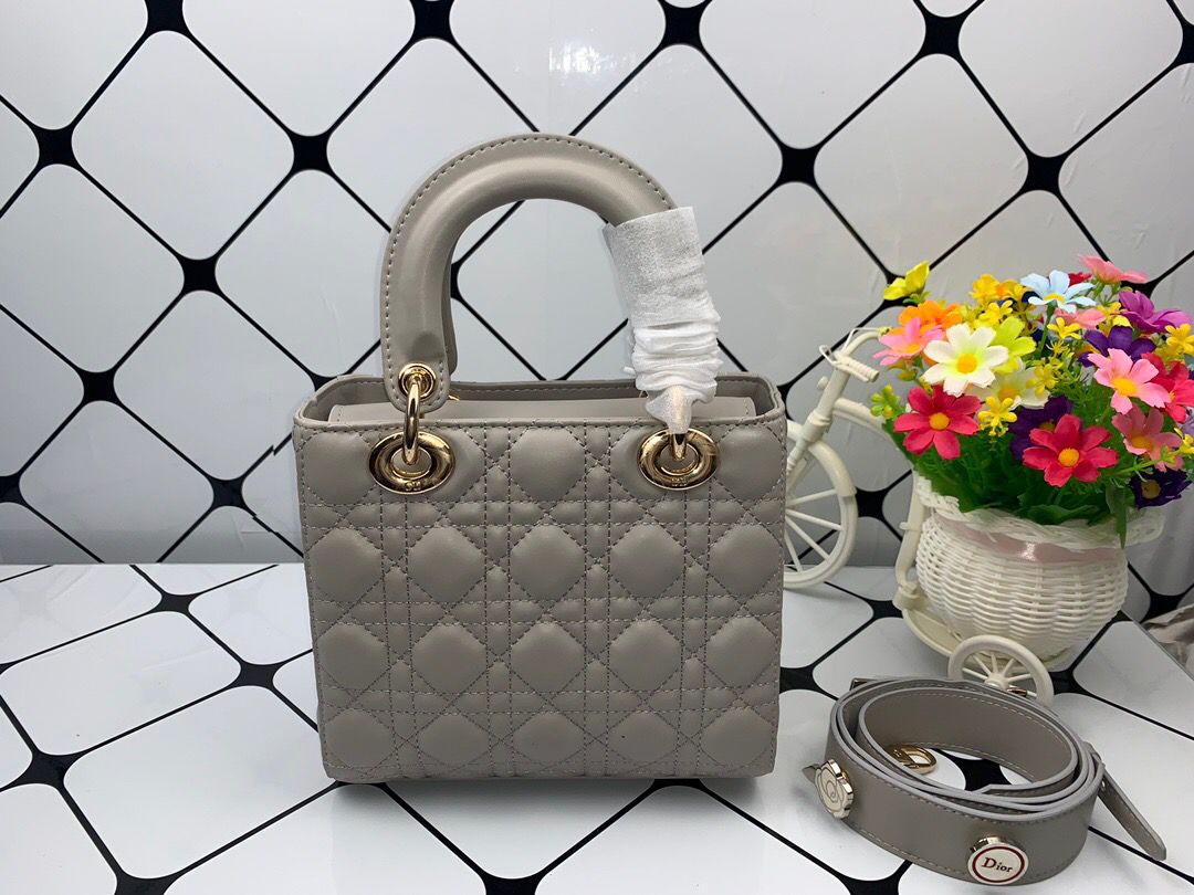 DI Small Lady Bag Gold Toned Hardware, Dark Grey, For Womtlm Womtlm’s Handbags, Crossbody Bags, 20cm CD