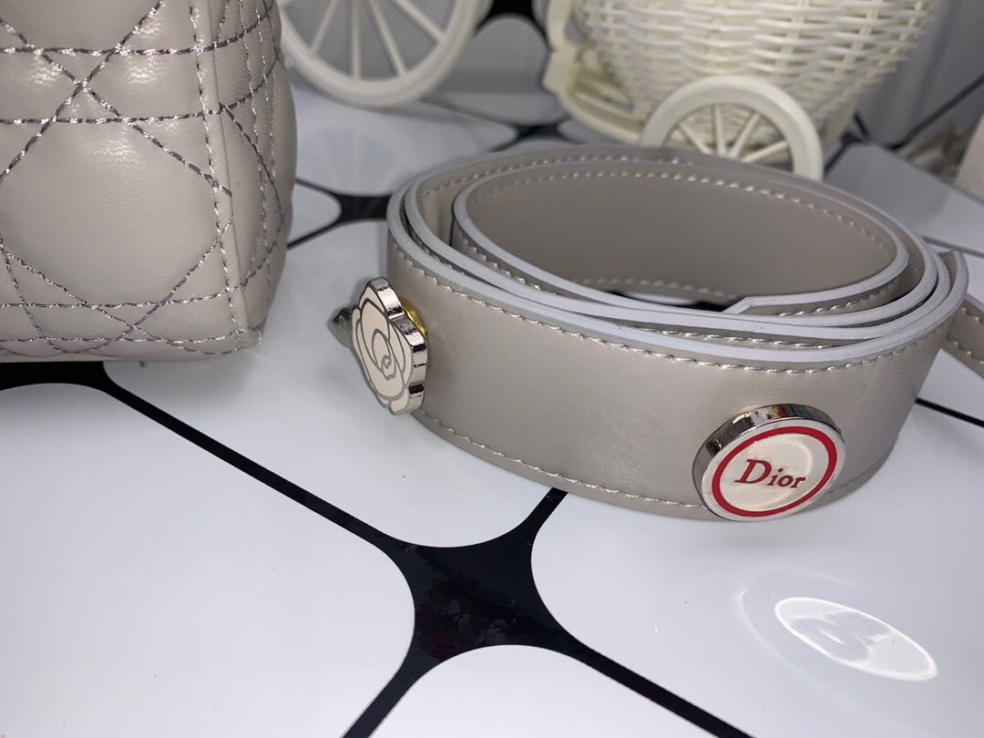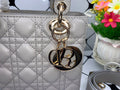 The Lady DYOR bag epitomizes DYOR’s vision of TLMgance and beauty. Sleek and refined, the timTLMss style is crafted in Dark Grey with Cannage stitching, creating the instantly recognizable quilted texture. Shiny gold-finish metal ‘D.I.O.R.’ charms further embellish its silhouette. The small Lady DYOR bag features a thin, removable shoulder strap and can be carried by hand or worn crossbody.