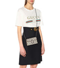 GG canvas, made using an earth-conscious process, with taupe suede detail.
