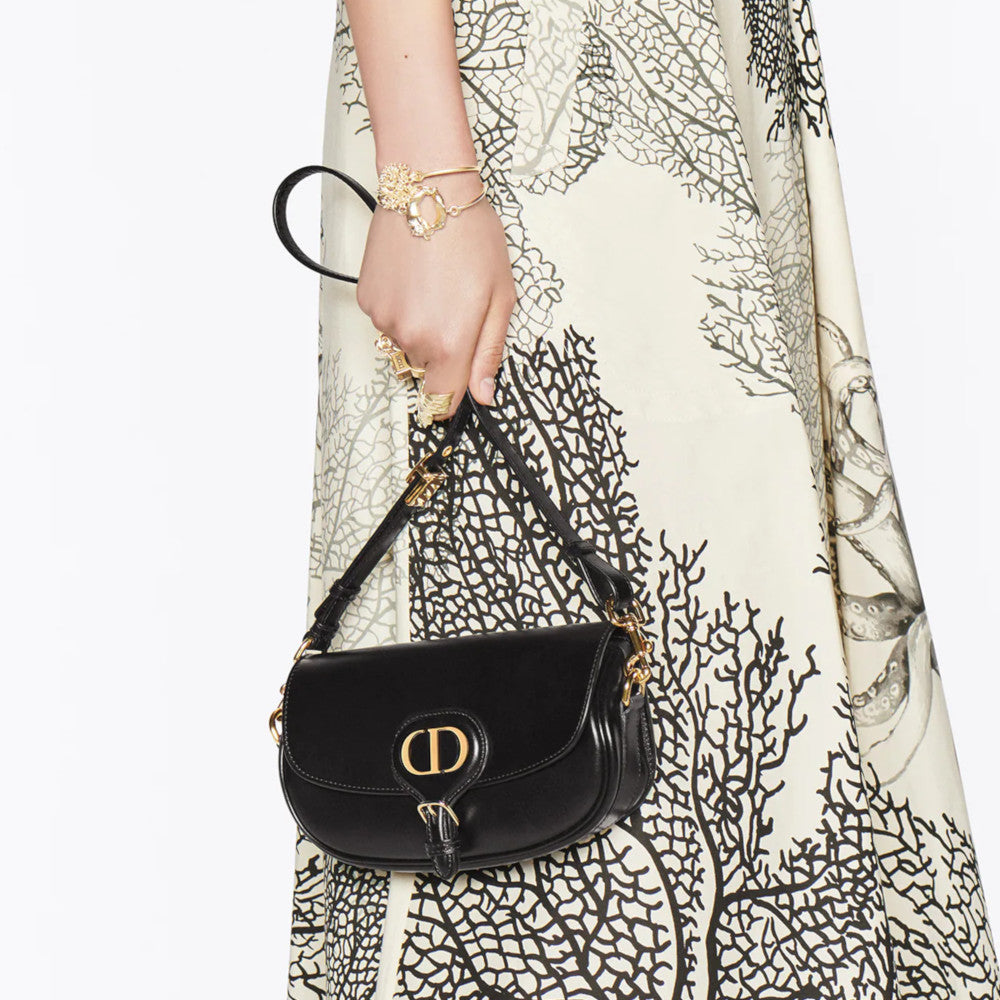 New this season, the Dior Bobby East-West Bag modernizes the allure of the Hobo silhouette through elegant lines and harmonious proportions. The box calfskin style features a suede interior for added suppleness as well as antique gold-finish metal hardware. Adorned with a removable, adjustable sliding shoulder strap with a signature military-inspired buckle, the Dior Bobby Bag can be carried by hand, over the shoulder by day or crossbody for a sportier look. Flap closure Magnetic clasp with decorative CD buckle Embossed 30 MONTAIGNE signature on the back Back pocket Interior patch pocket Adjustable and removable sliding leather shoulder strap Christian Dior military-inspired buckle Dust Bag included Made in ItalyBox Calfskin Product code:M9327UMOL_M900