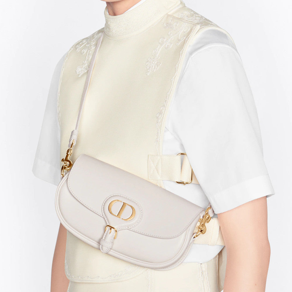 New this season, the Dior Bobby East-West Bag modernizes the allure of the Hobo silhouette through elegant lines and harmonious proportions. The box calfskin style features a suede interior for added suppleness as well as antique gold-finish metal hardware. Adorned with a removable, adjustable sliding shoulder strap with a signature military-inspired buckle, the Dior Bobby Bag can be carried by hand, over the shoulder by day or crossbody for a sportier look. Flap closure Magnetic clasp with decorative CD buckle Embossed 30 MONTAIGNE signature on the back Back pocket Interior patch pocket Adjustable and removable sliding leather shoulder strap Christian Dior military-inspired buckle Dust Bag included Made in ItalyBox Calfskin Product code:M9327UMOL_M030