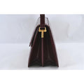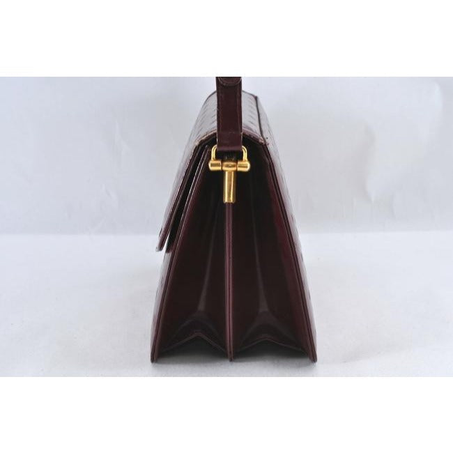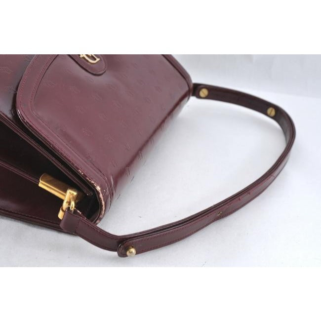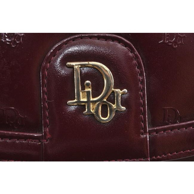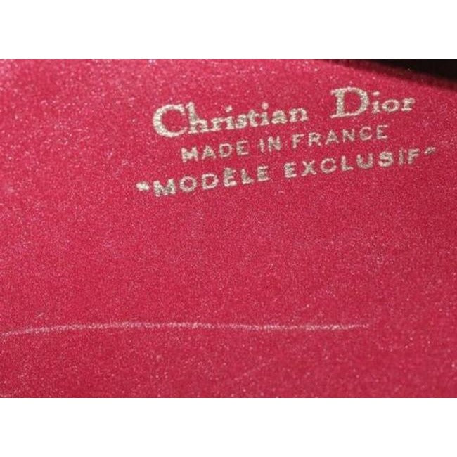 The purse has the gold horse-bit hardware on the sides where the strap is attached. Inside, there are multiple compartments and pockets to keep you organized. The interior is extremely clean burgundy fabric and leather. It is embossed along the back with 'Christian Dior, Made in France, Modele Exclusif'! It is a unique style by Dior that will last a lifetime with you- don't miss out!