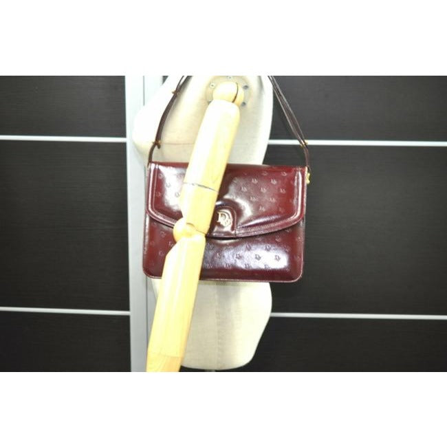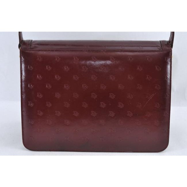 This purse is a rare style with the oblique logo design Dior has brought back this season! The bag is made of burgundy leather with an embossed oblique Dior logo design throughout. It has an envelope style top with a flap style top and snap closure, multiple interior compartments, and gold Dior logo accents. It has a shoulder strap with two settings, a back pocket, an expandable bottom and interior pockets.