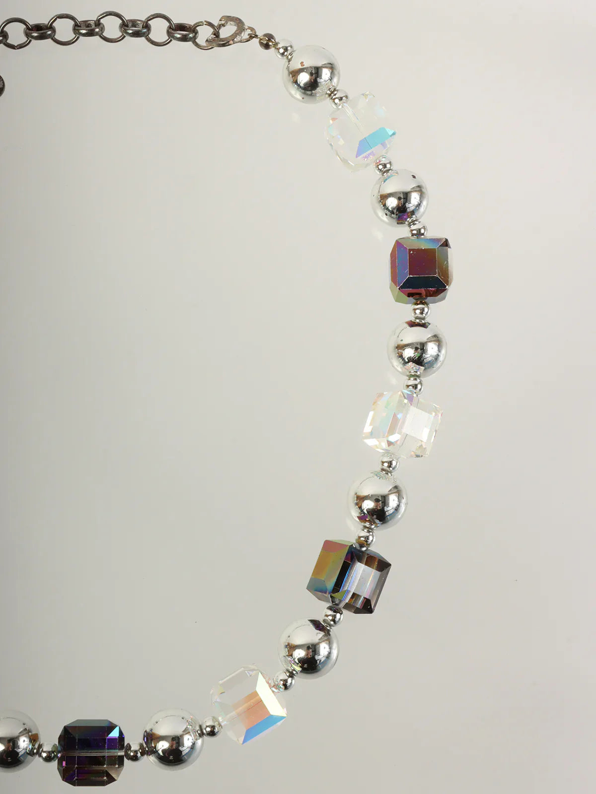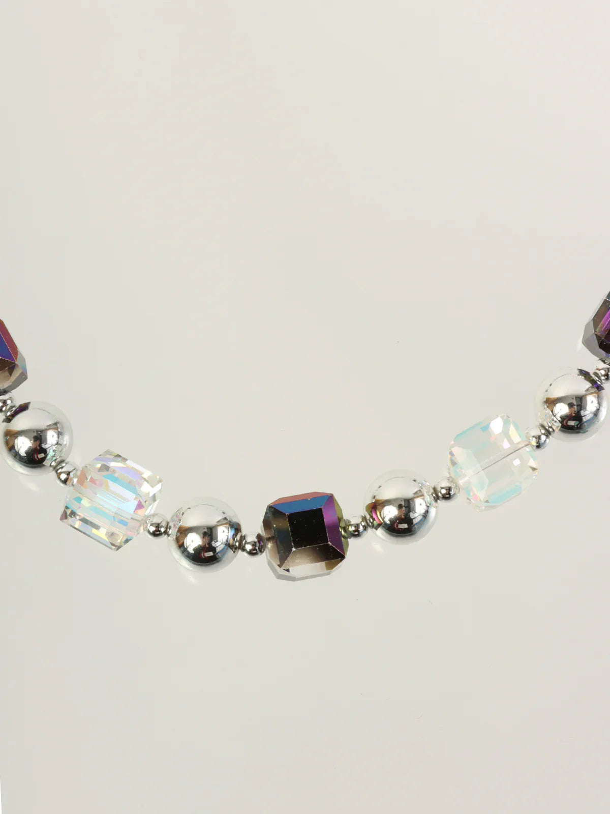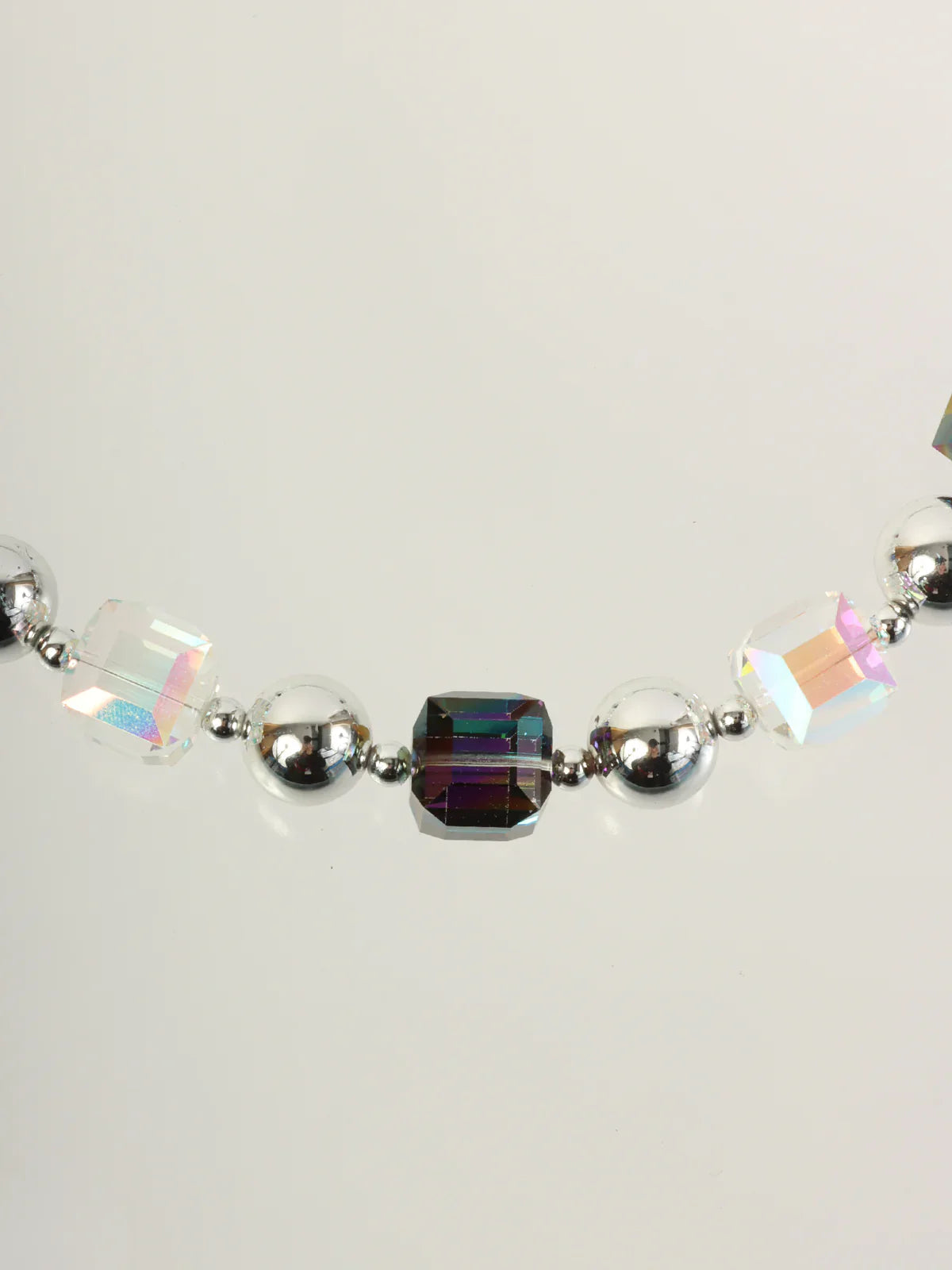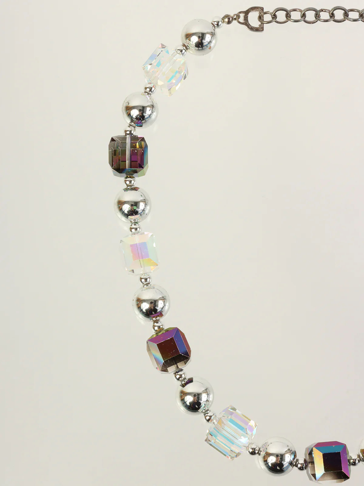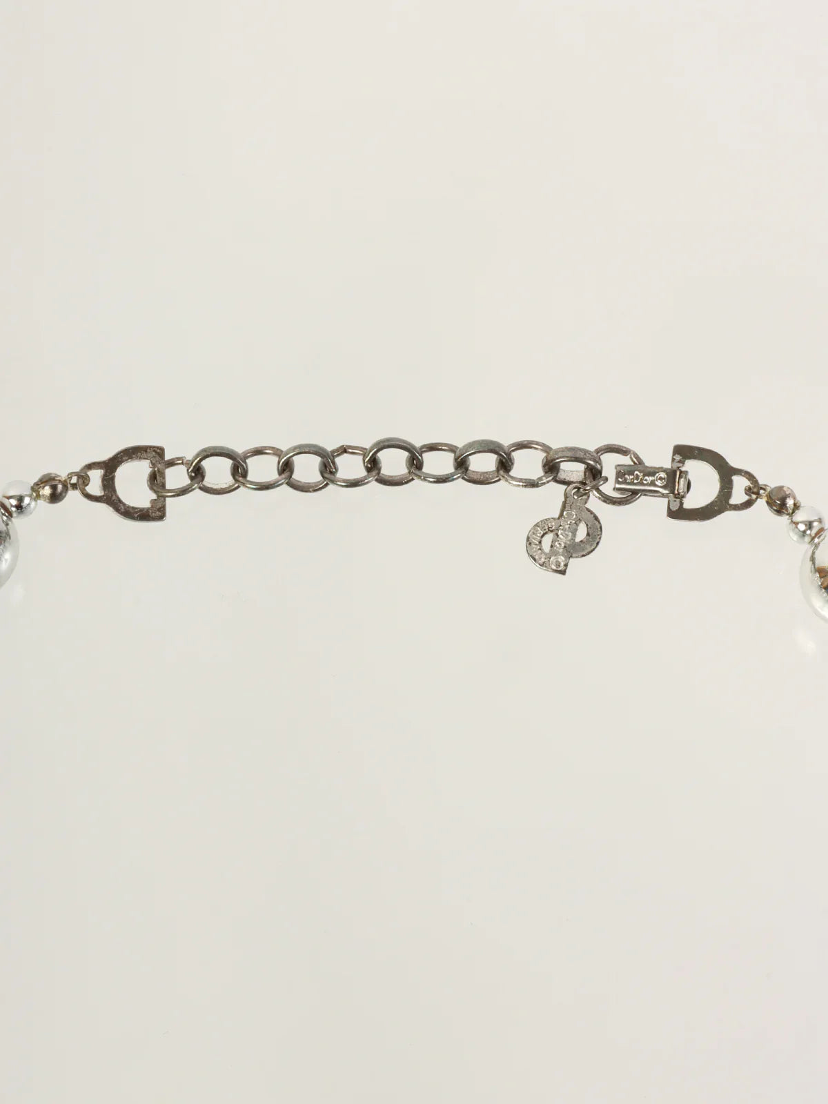 DIOR Aurora Bijoux Logo Charm Necklace Silver/Clear/Purple