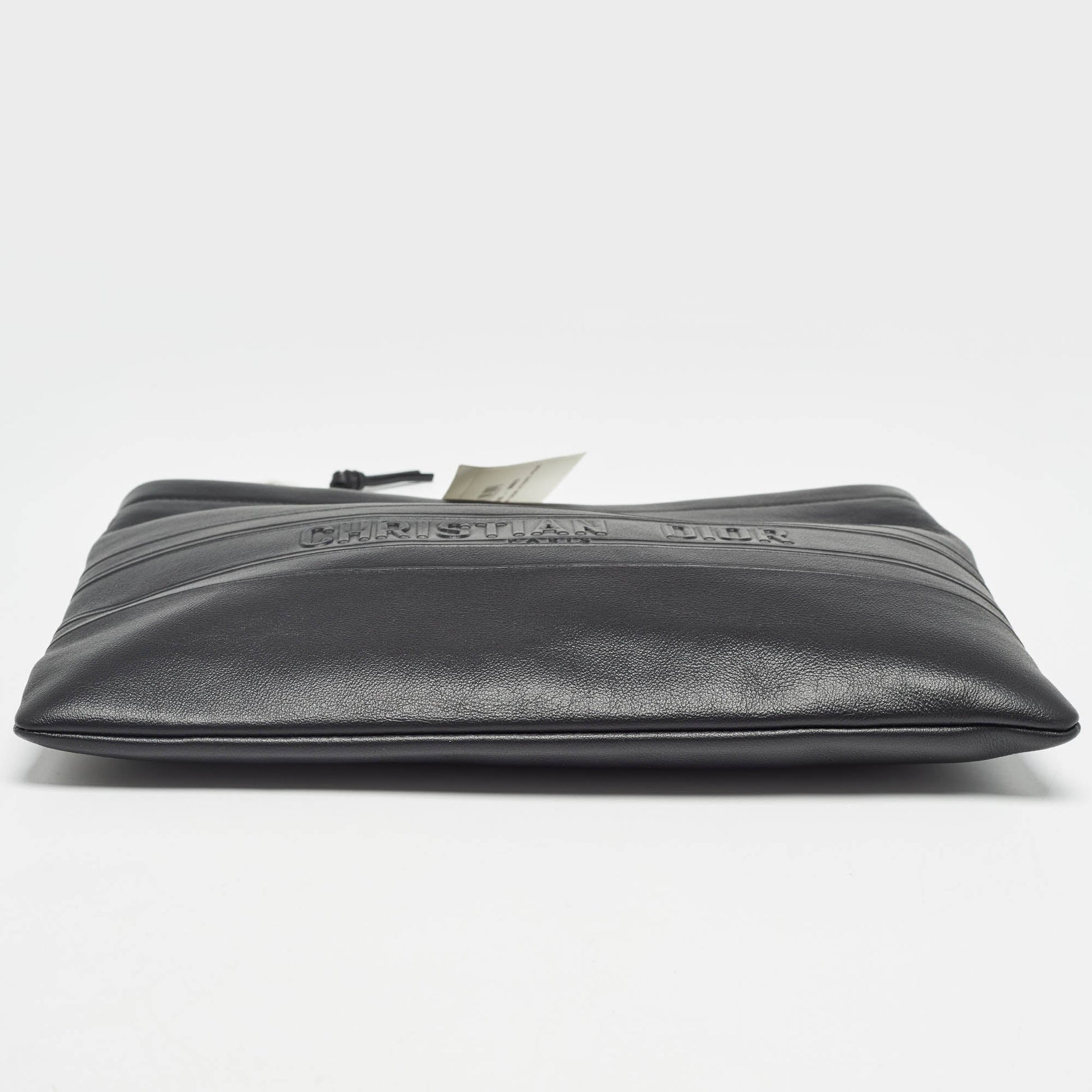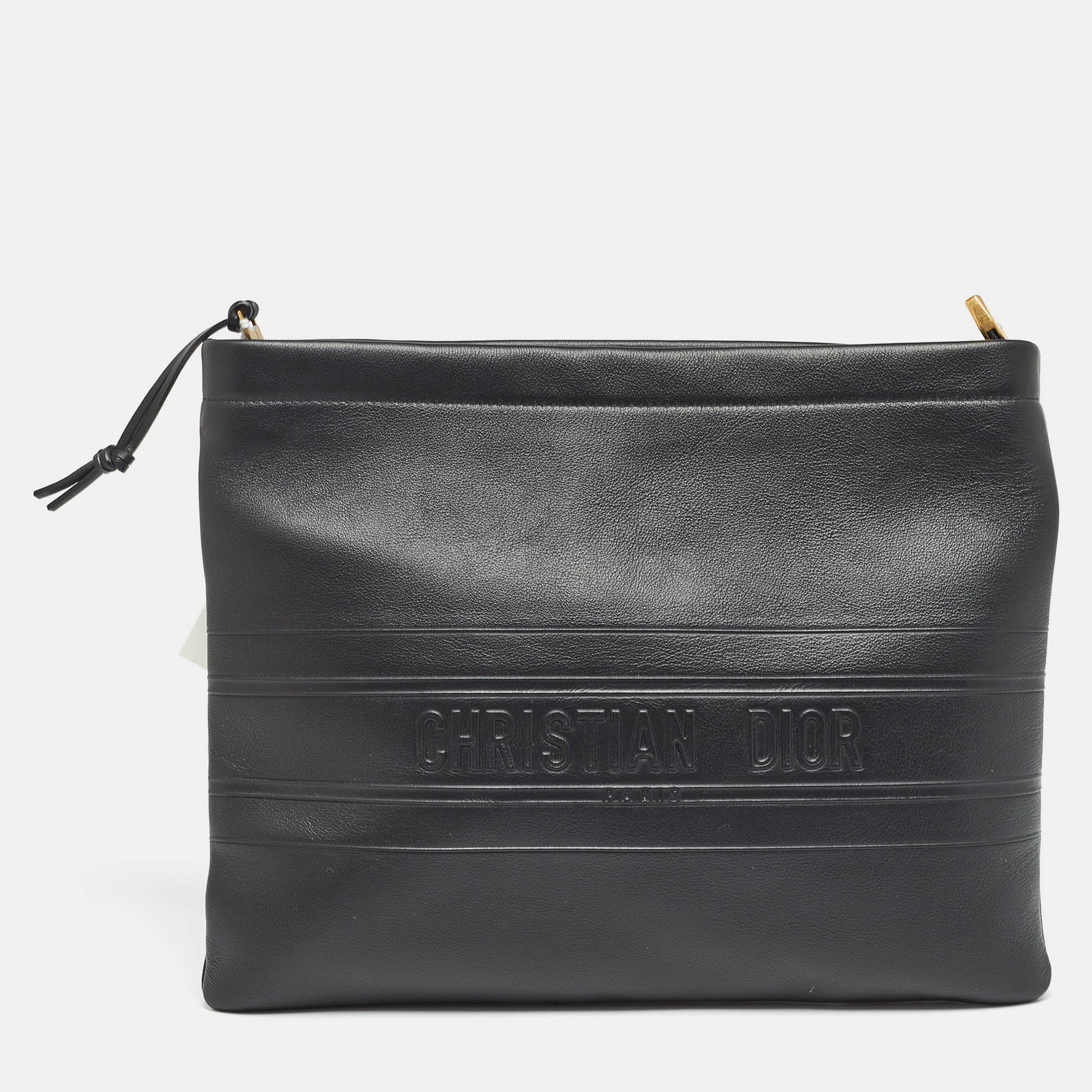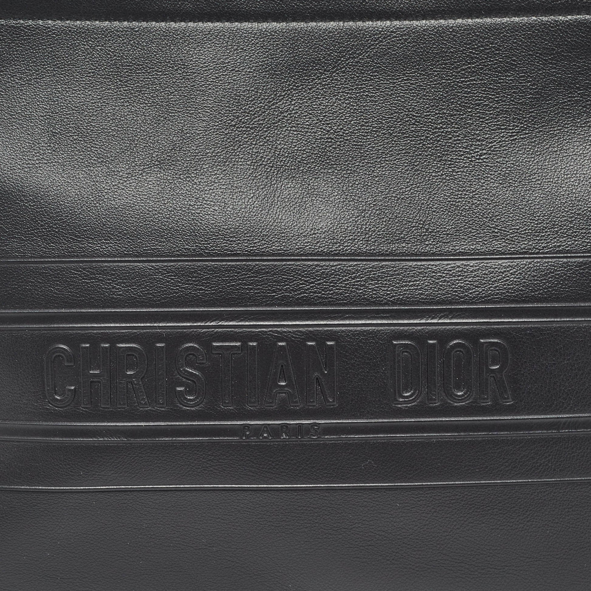DIOR Black Leather Medium Stripe Pouch