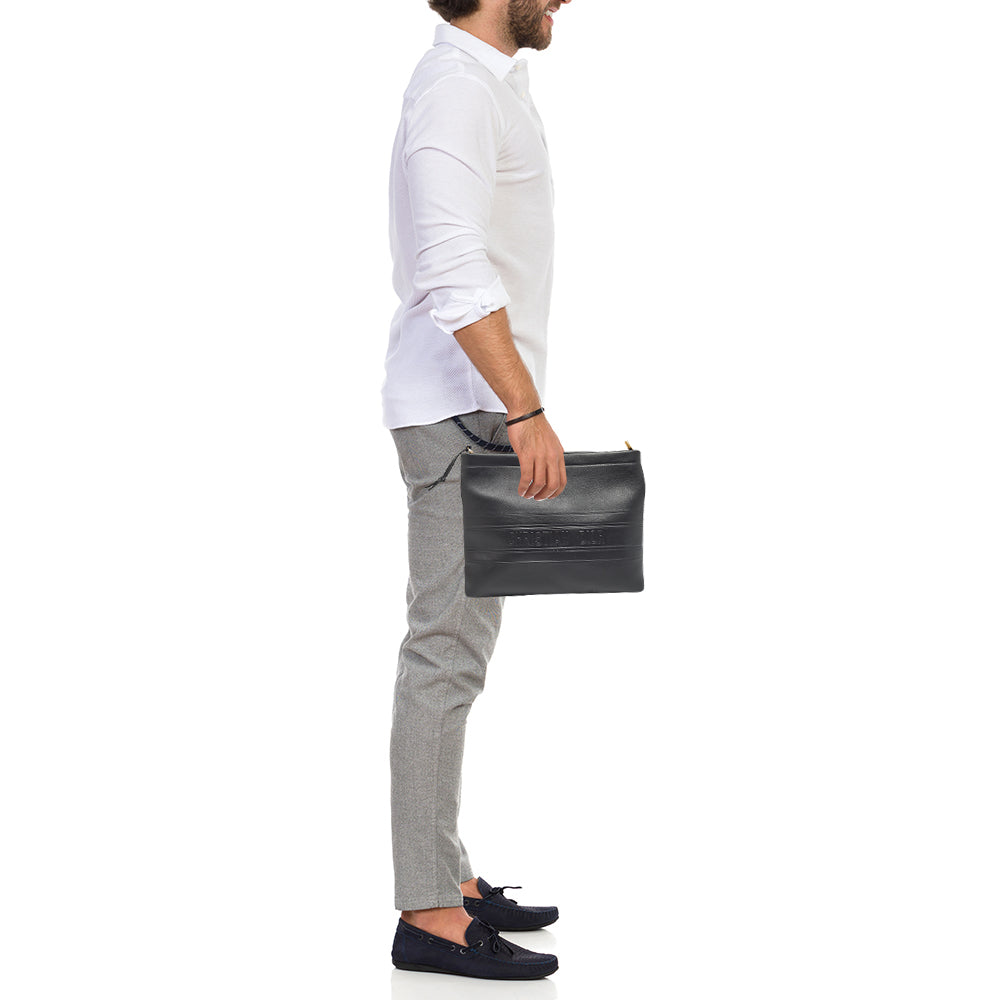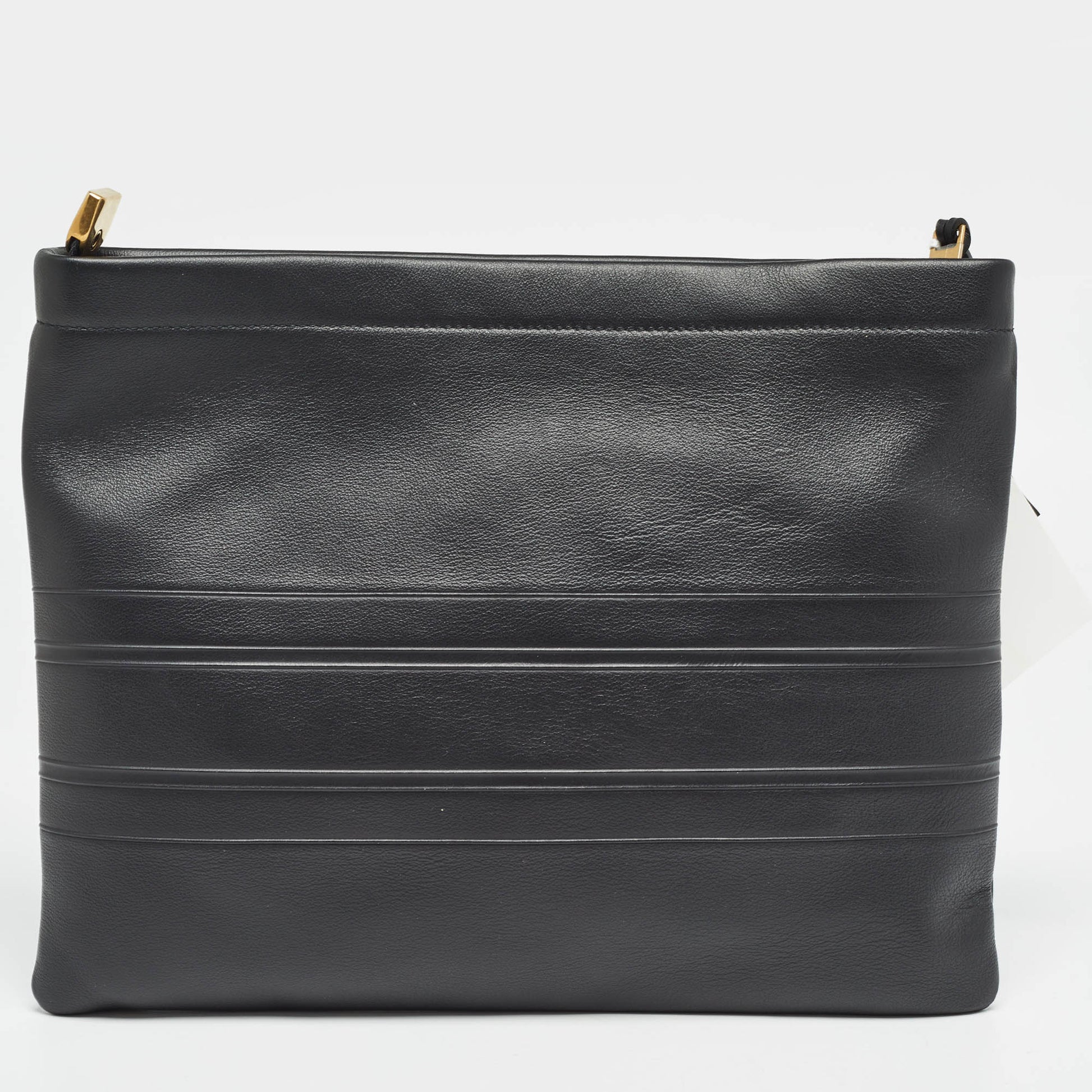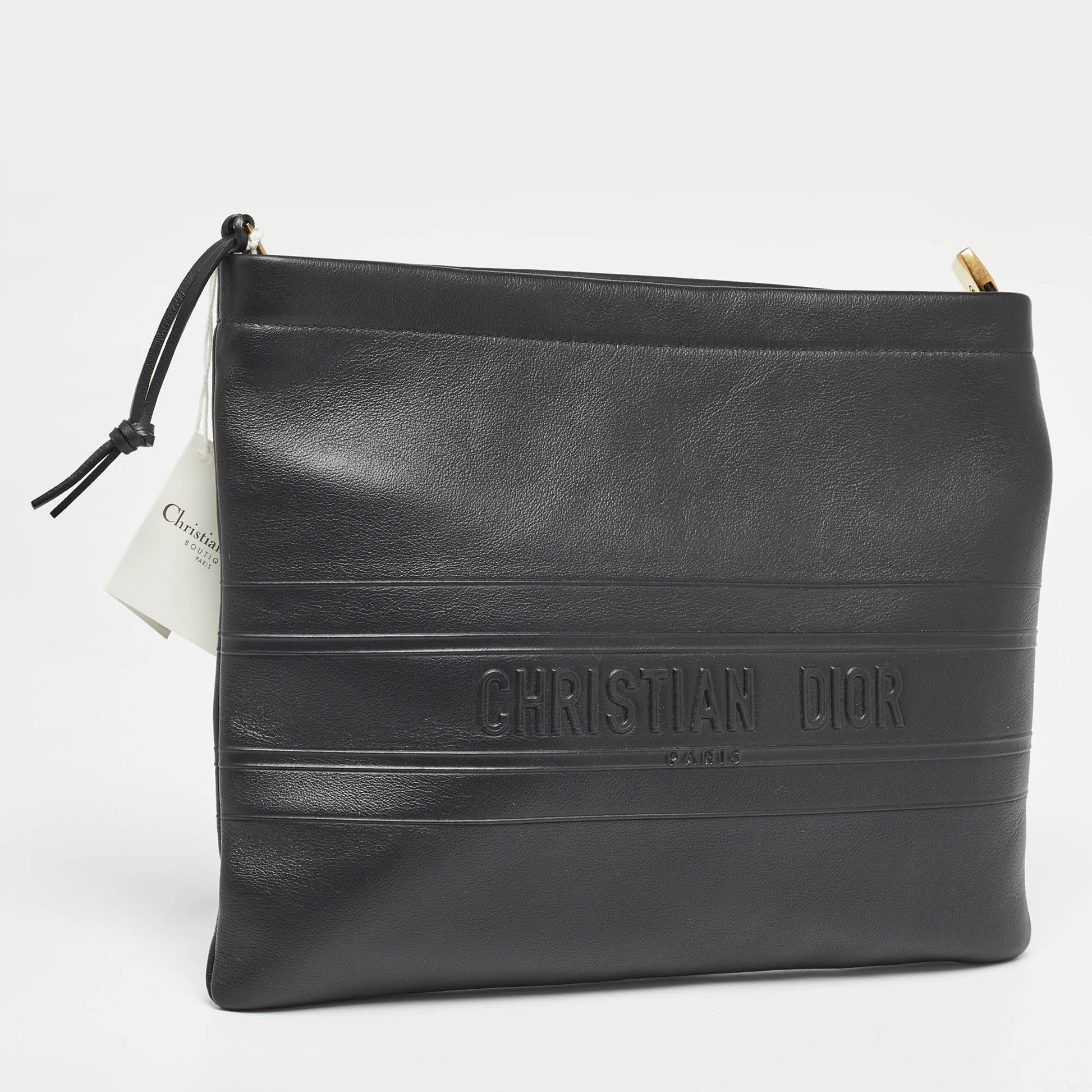 DIOR Black Leather Medium Stripe Pouch