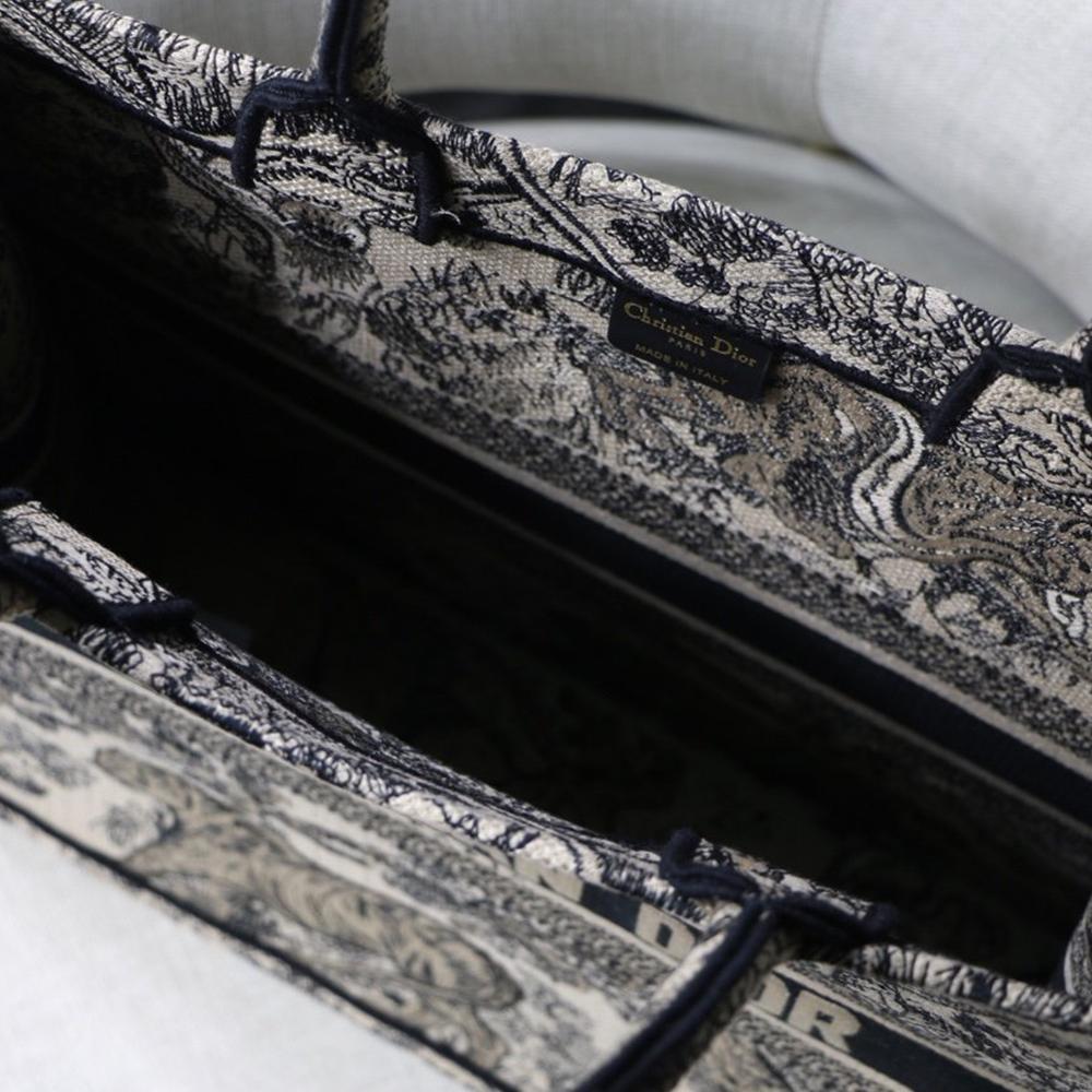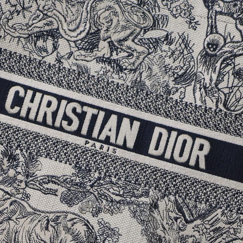 Introduced by Maria Grazia Chiuri, the Dior Book Tote has become a staple of the Dior aesthetic. Designed to hold all the daily essentials, the style has been fully embroidered with a blue Toile de Jouy motif. Adorned with the 'Christian Dior' signature on the front, the bag exemplifies the House's signature savoir-faire and may be carried by hand or over the shoulder.