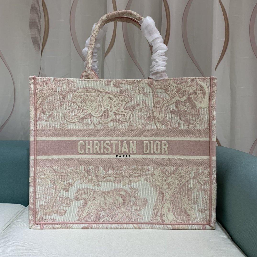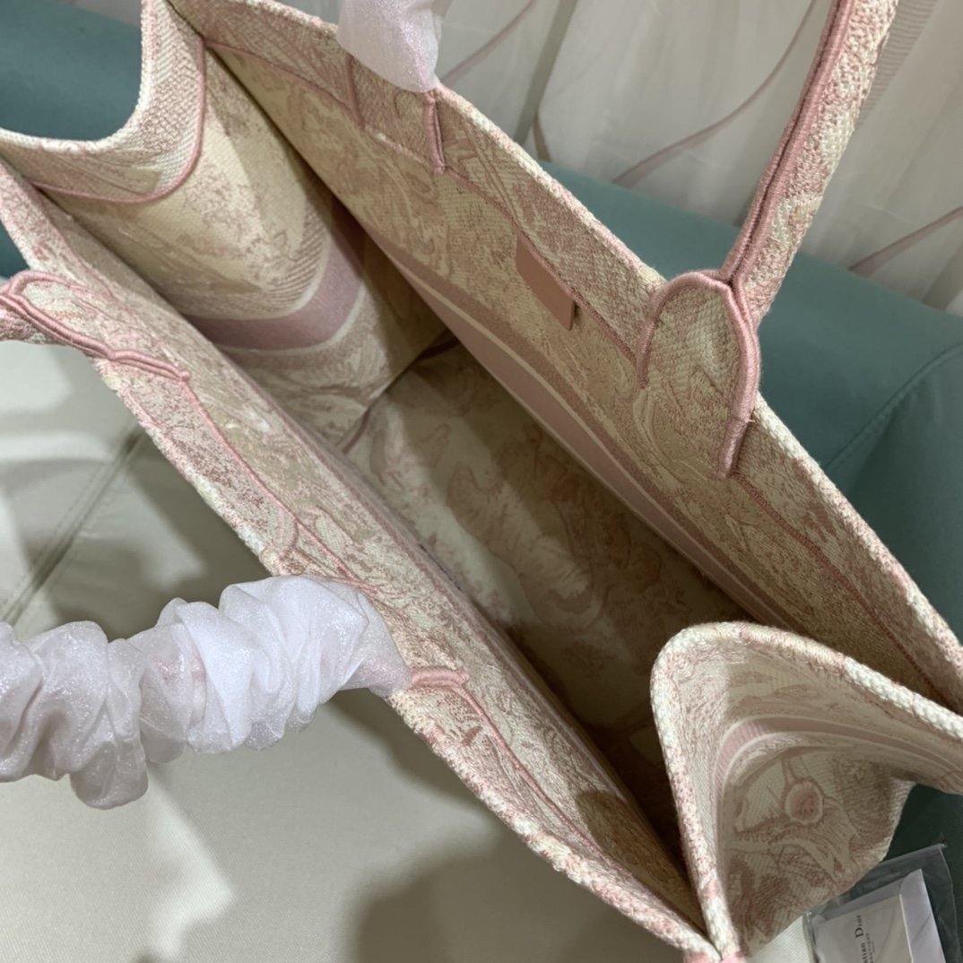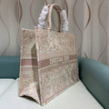 Introduced by Maria Grazia Chiuri, the Dior Book Tote has become a staple of the Dior aesthetic. Designed to hold all the daily essentials, the style has been fully embroidered with a pink Toile de Jouy motif. Adorned with the 'Christian Dior' signature on the front, the Bag exemplifies the House's signature savoir-faire and may be carried by hand or over the shoulder.
