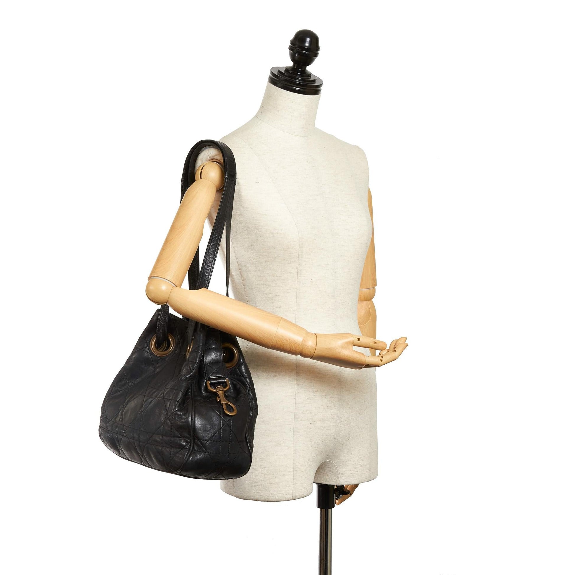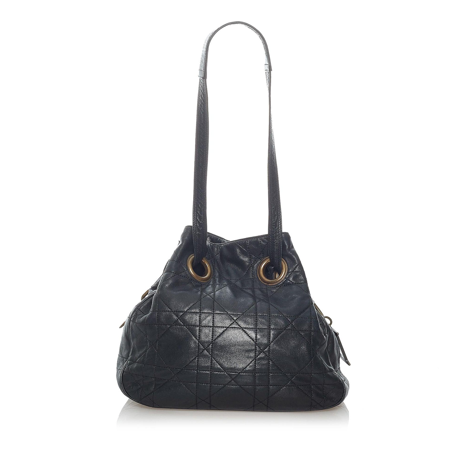 Dior Cannage Leather Drawstring Tote Bag (SHG-31356)