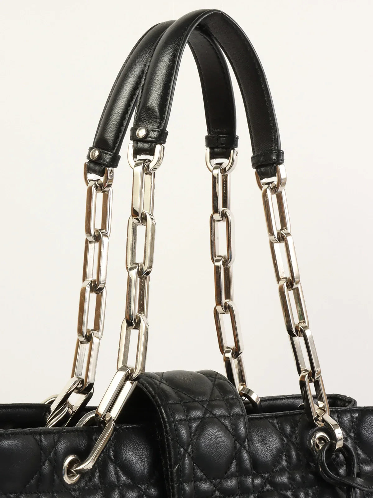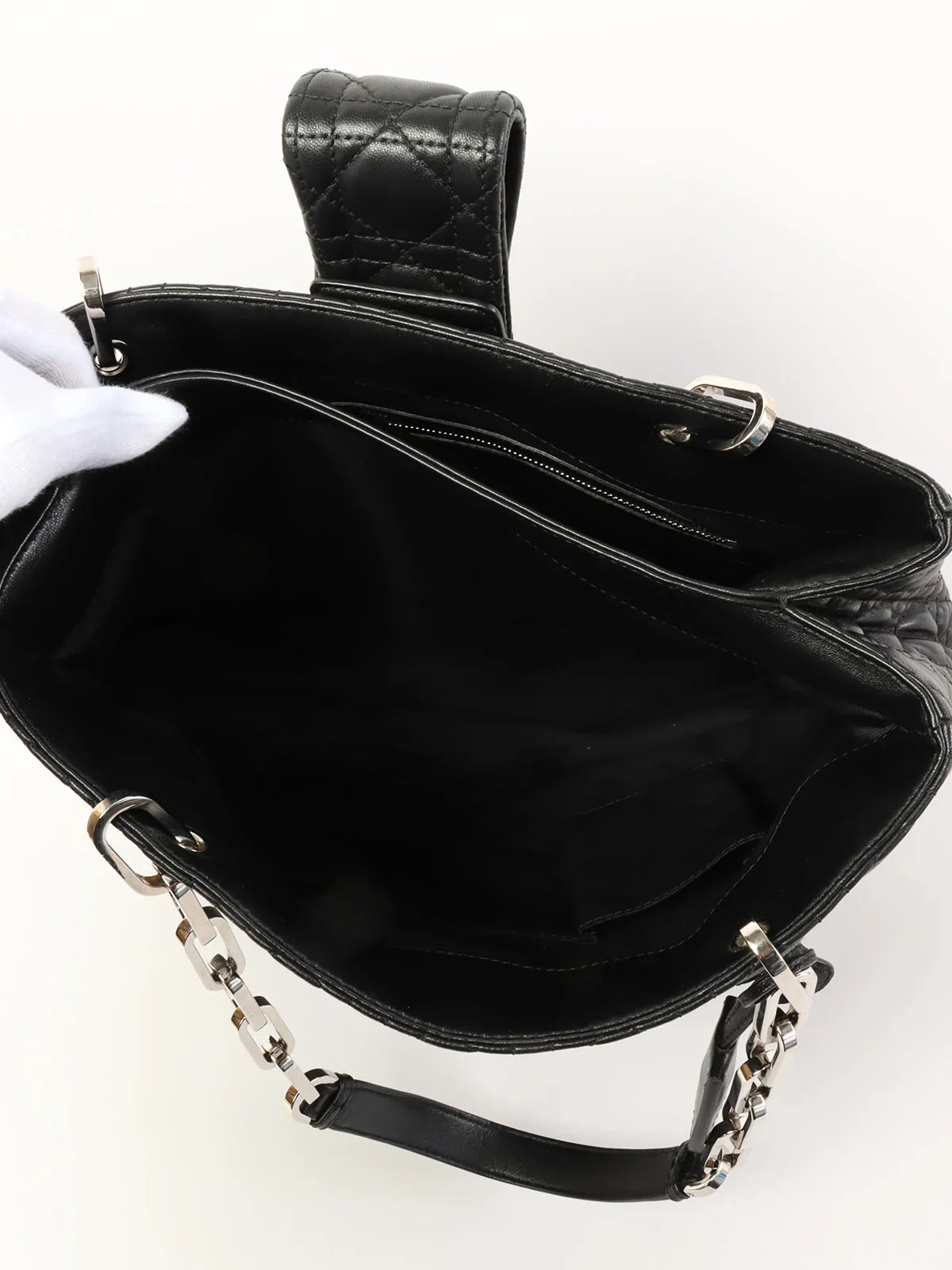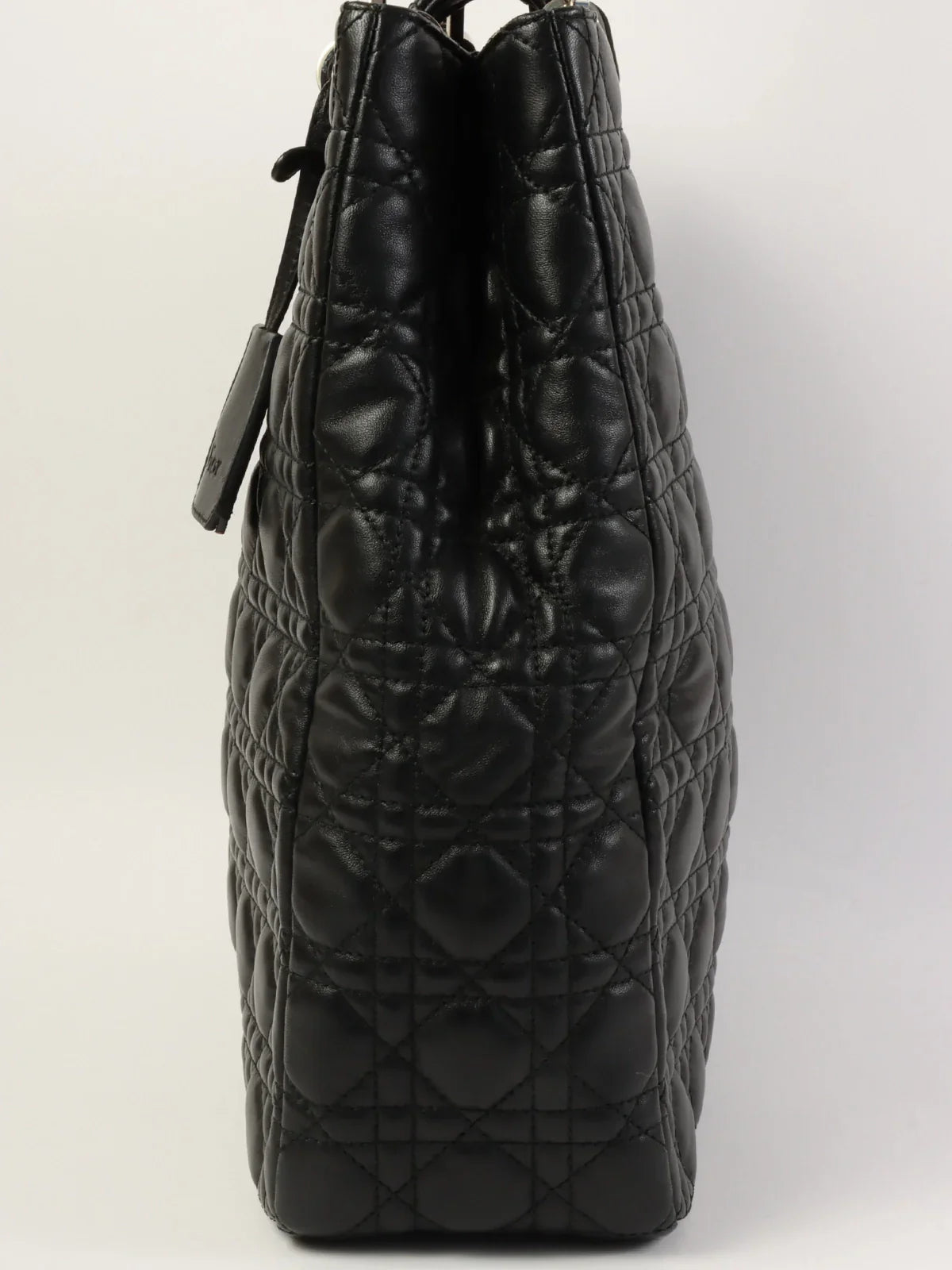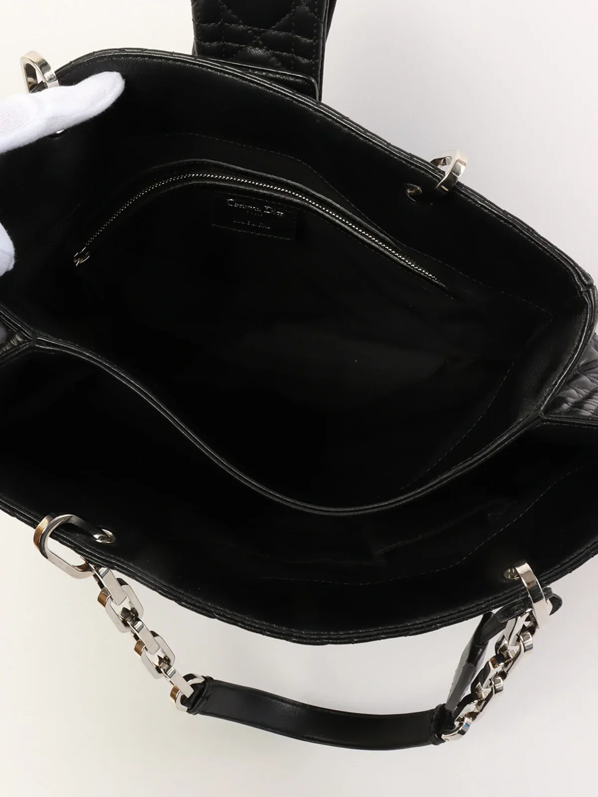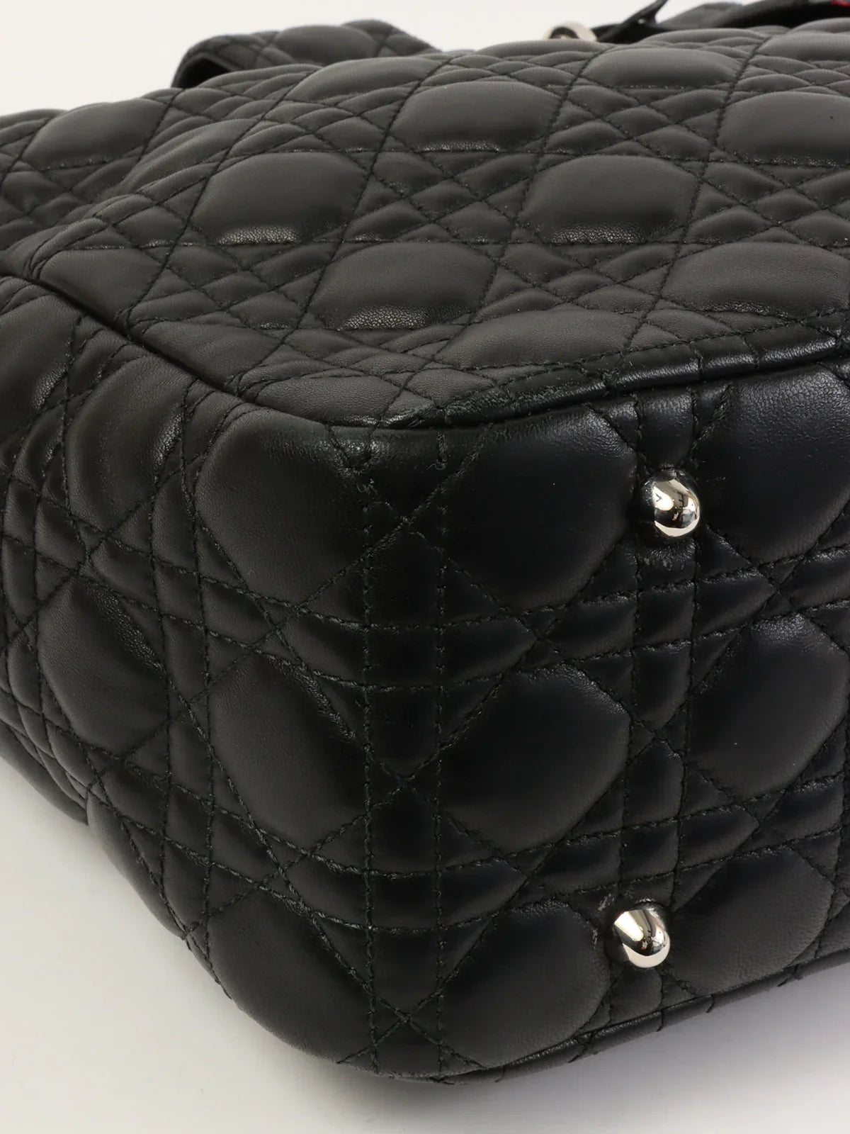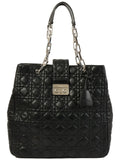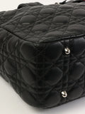 DIOR Cannage Stitch Logo Plate Chain Tote Bag Black