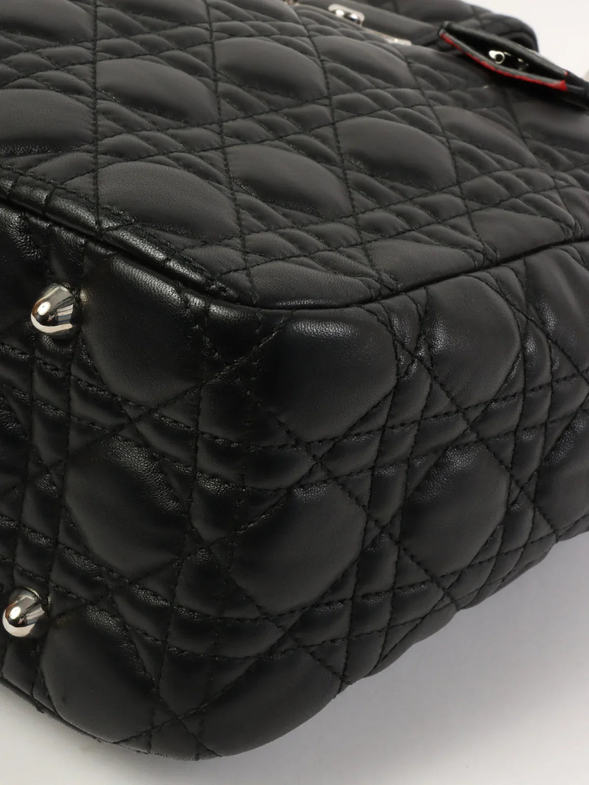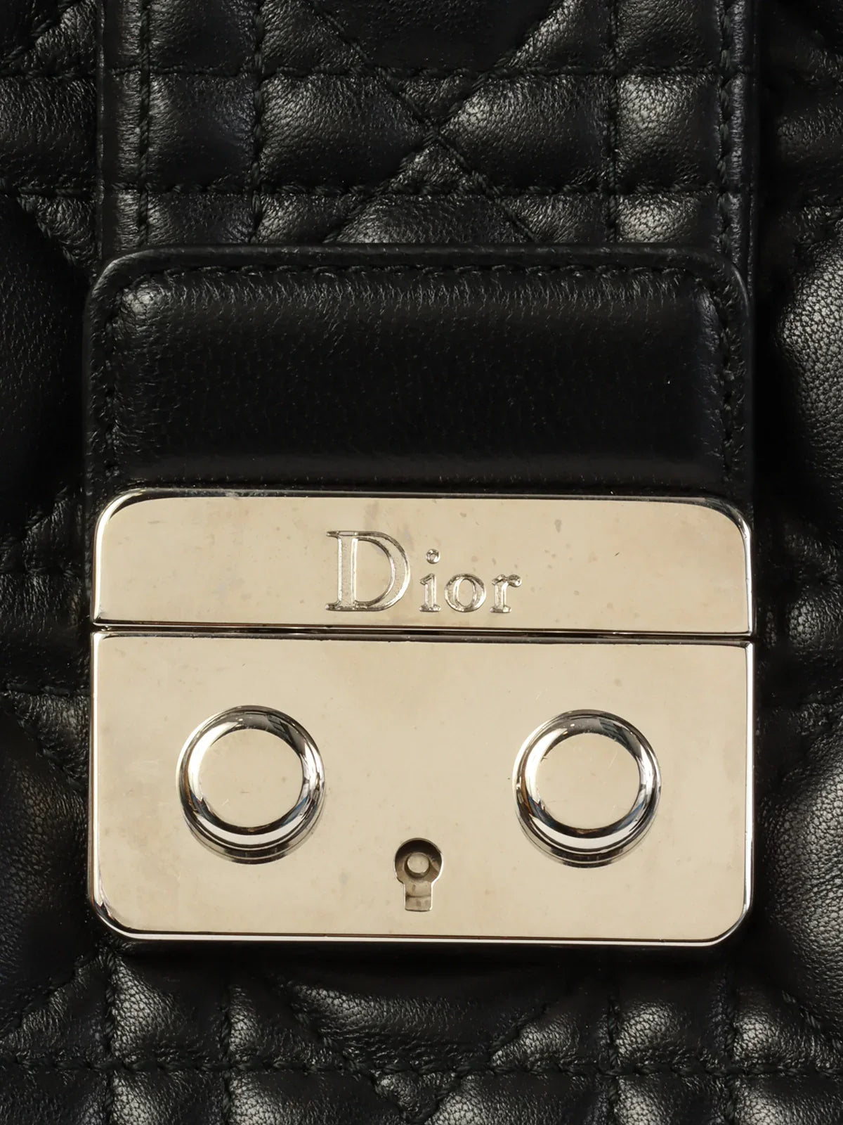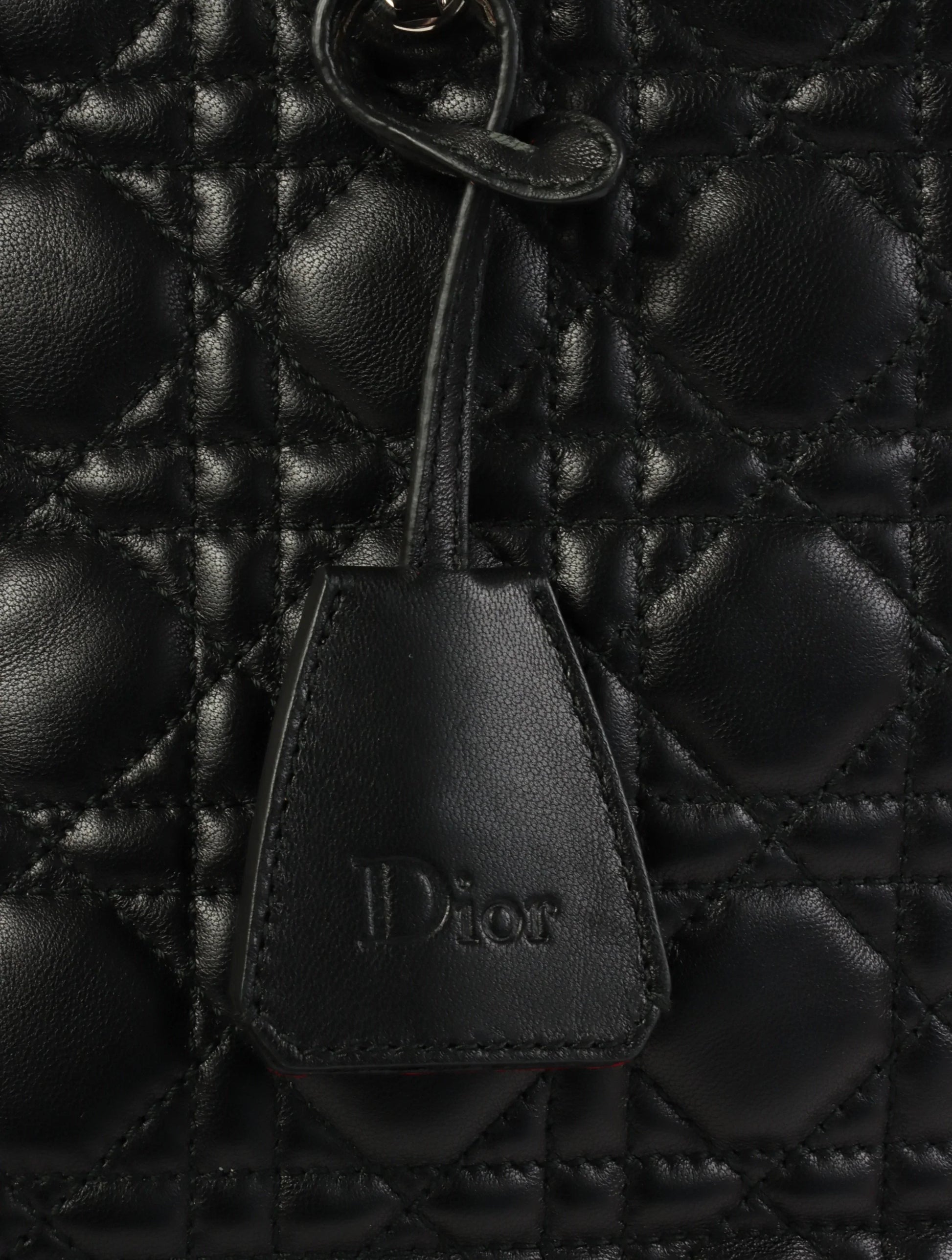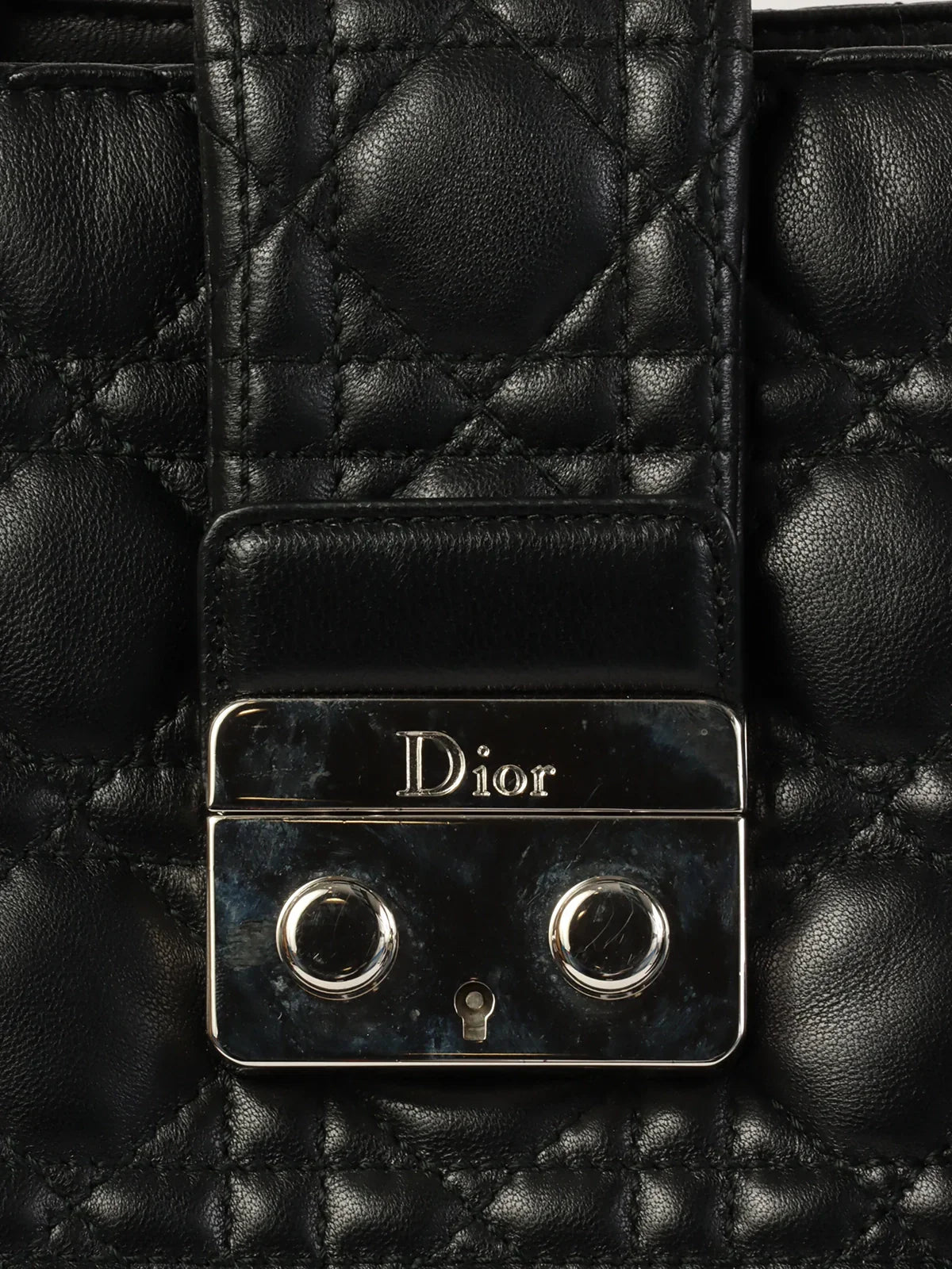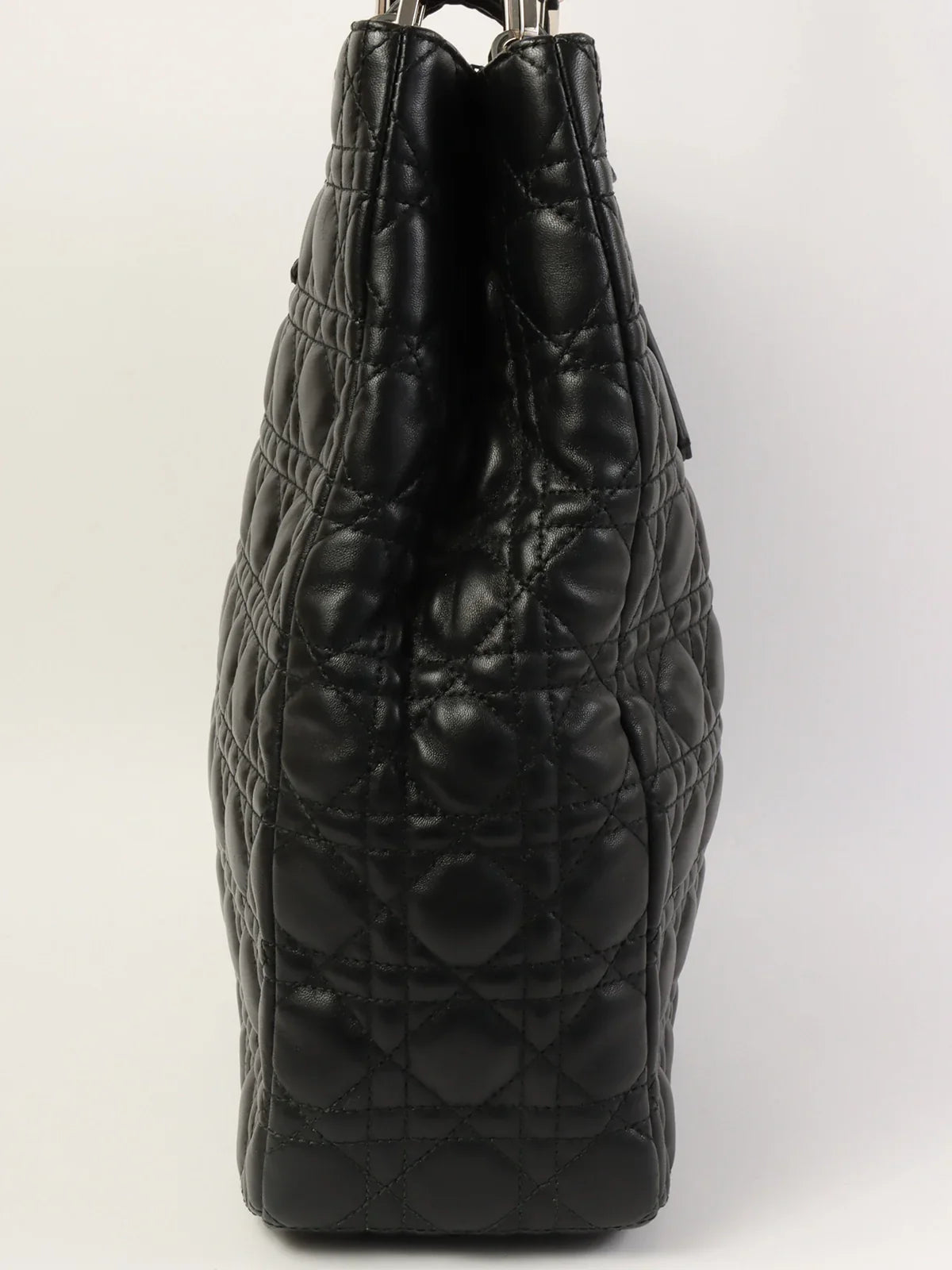 DIOR Cannage Stitch Logo Plate Chain Tote Bag Black