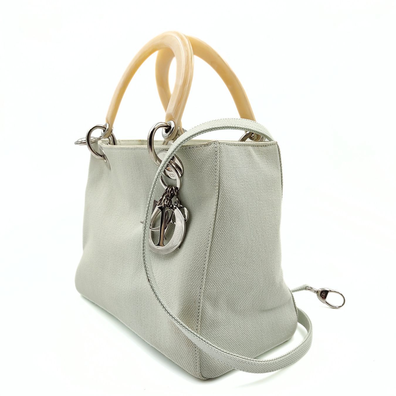 Christian Dior Lady Dior bag in pastel water green canvas.