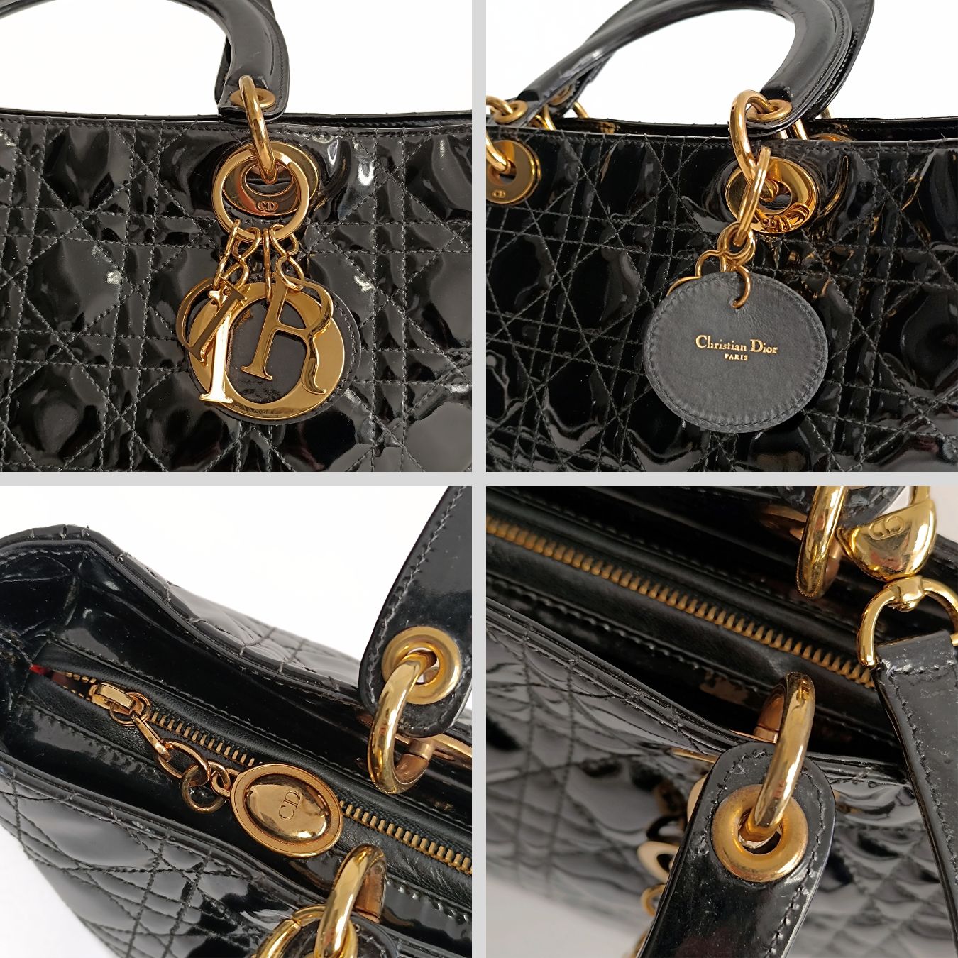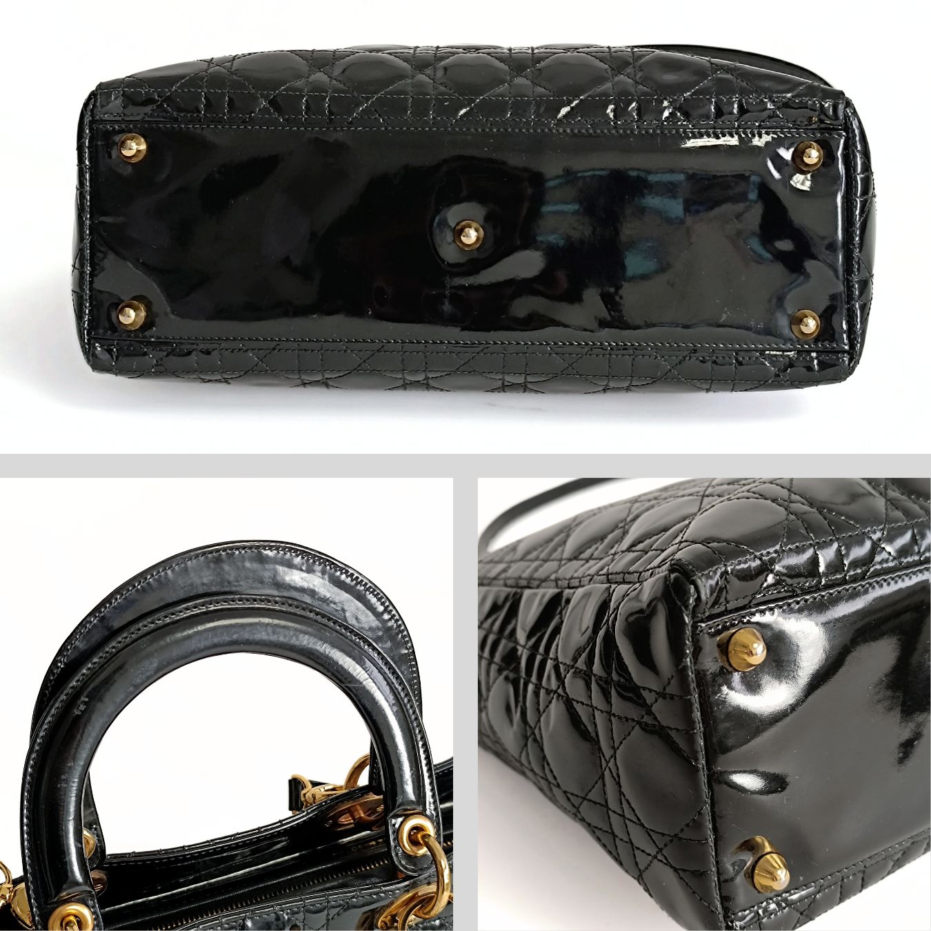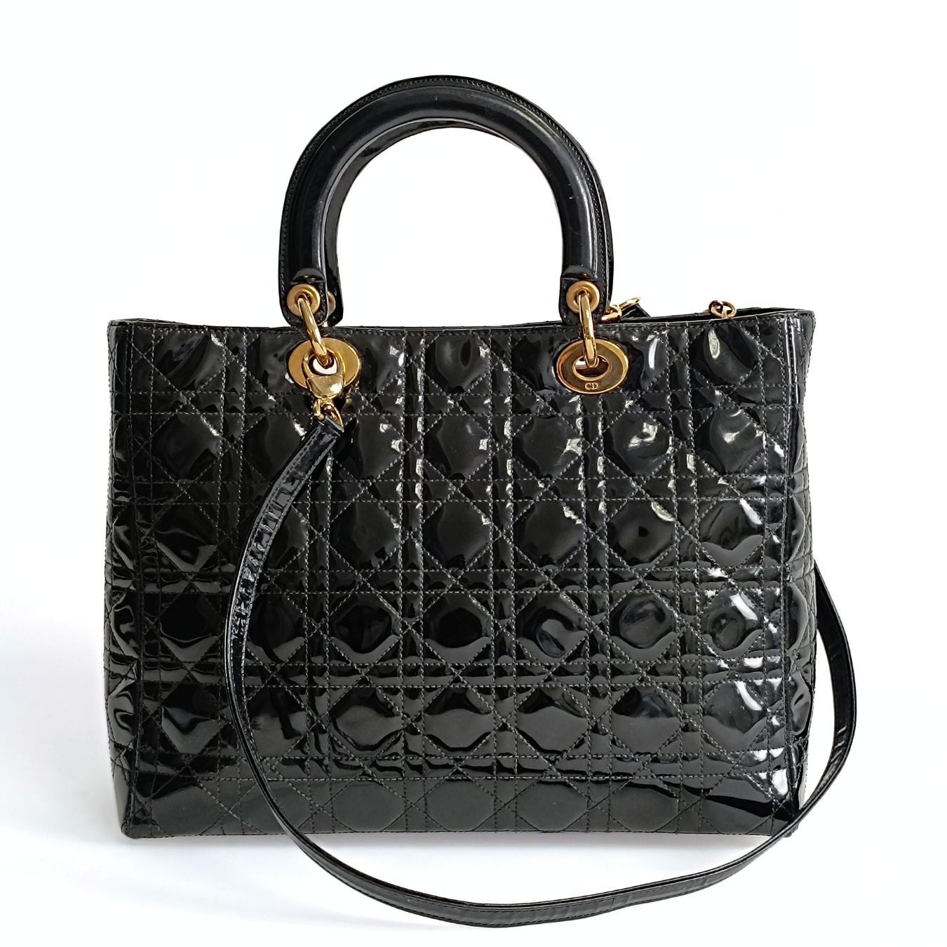 Christian Dior Lady Dior Grande shoulder bag in black patent leather.